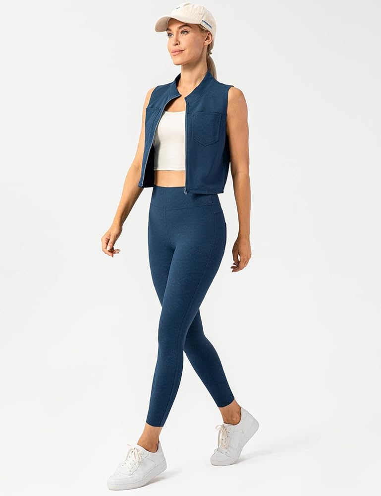 بنطال Lavento النسائي المطاطي مقاس 23 بوصة - بنطال يوجا متوسط الارتفاع مع جيوب خلفية