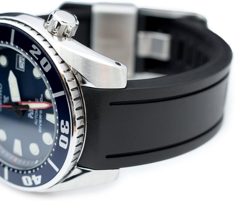 مقدمة: سوار الساعة كرافتر بلو هذا ذو الأطراف الصلبة المنحنية متوافق مع موديلات سيكو سومو SBDC001 وSBDC003 وSBDC005 وSPB103J1 وبادي سومو SBDC049. السوار المطاطي كرافتر بلو مصنوع من المطاط المفلكن النقي الذي يتميز بقوة فائقة وأكثر مقاومة من المطاط الطبيعي للزيوت والأحماض.