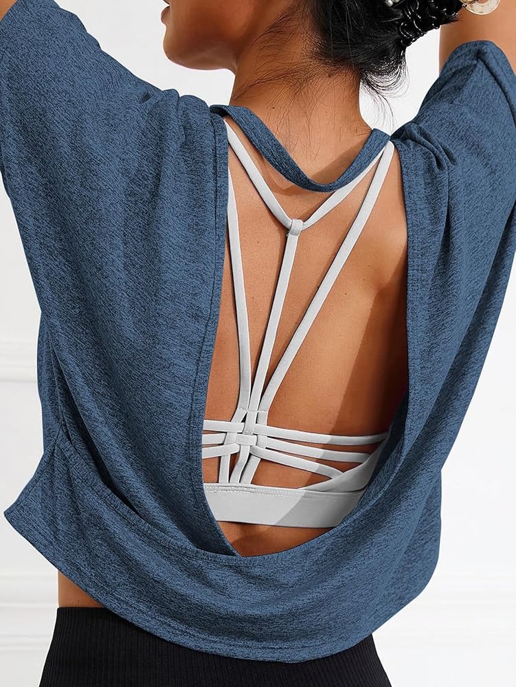 • Features: Round neck, short sleeve,high stretch, solid color,backless sports tee,basic yoga t shirts