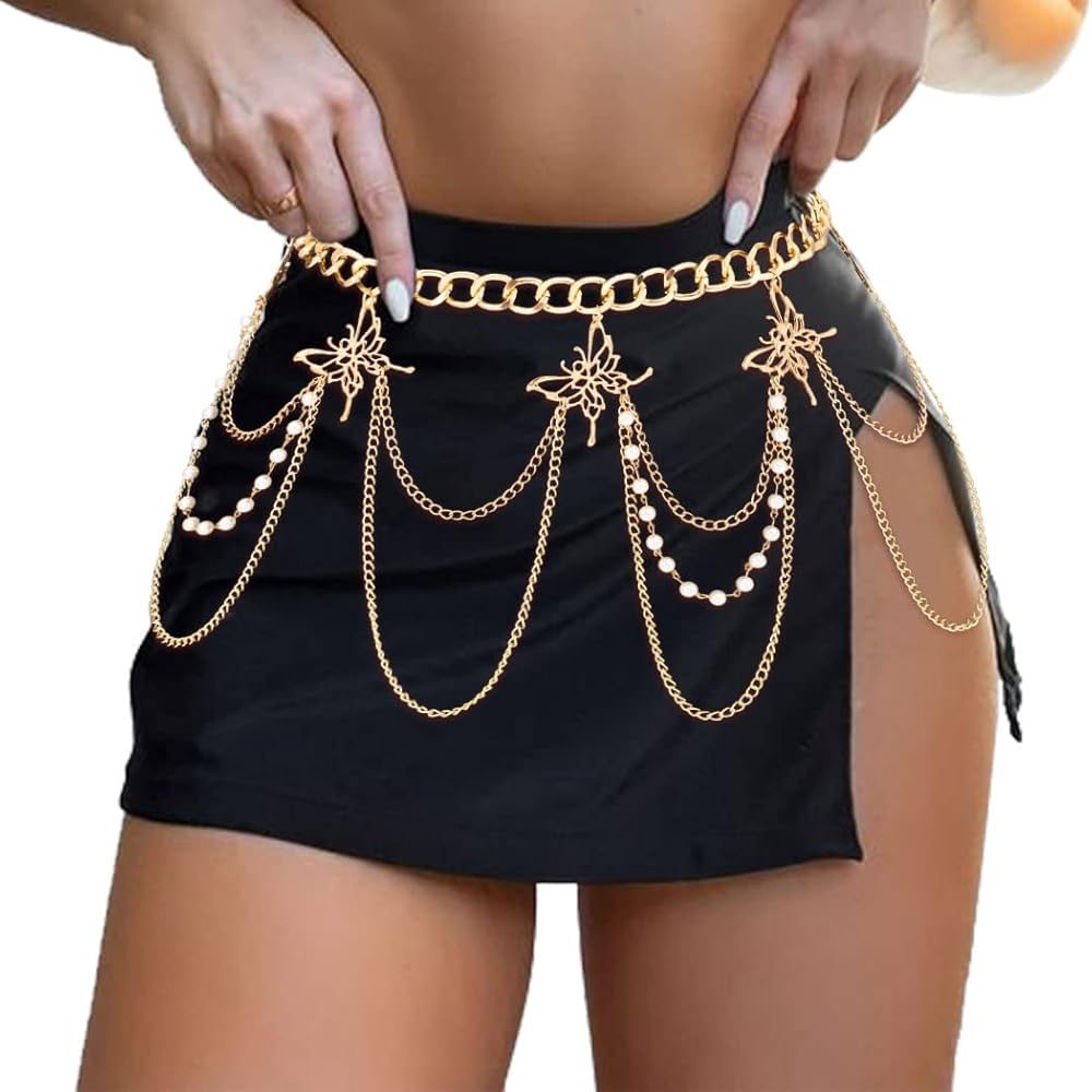 سلاسل الجسم ذات طبقات من لؤلؤ ريتان وسلسلة خصر على شكل فراشة ذهبية وسلسلة بطن للحفلات وإكسسوارات مجوهرات عصرية للنساء والفتيات
