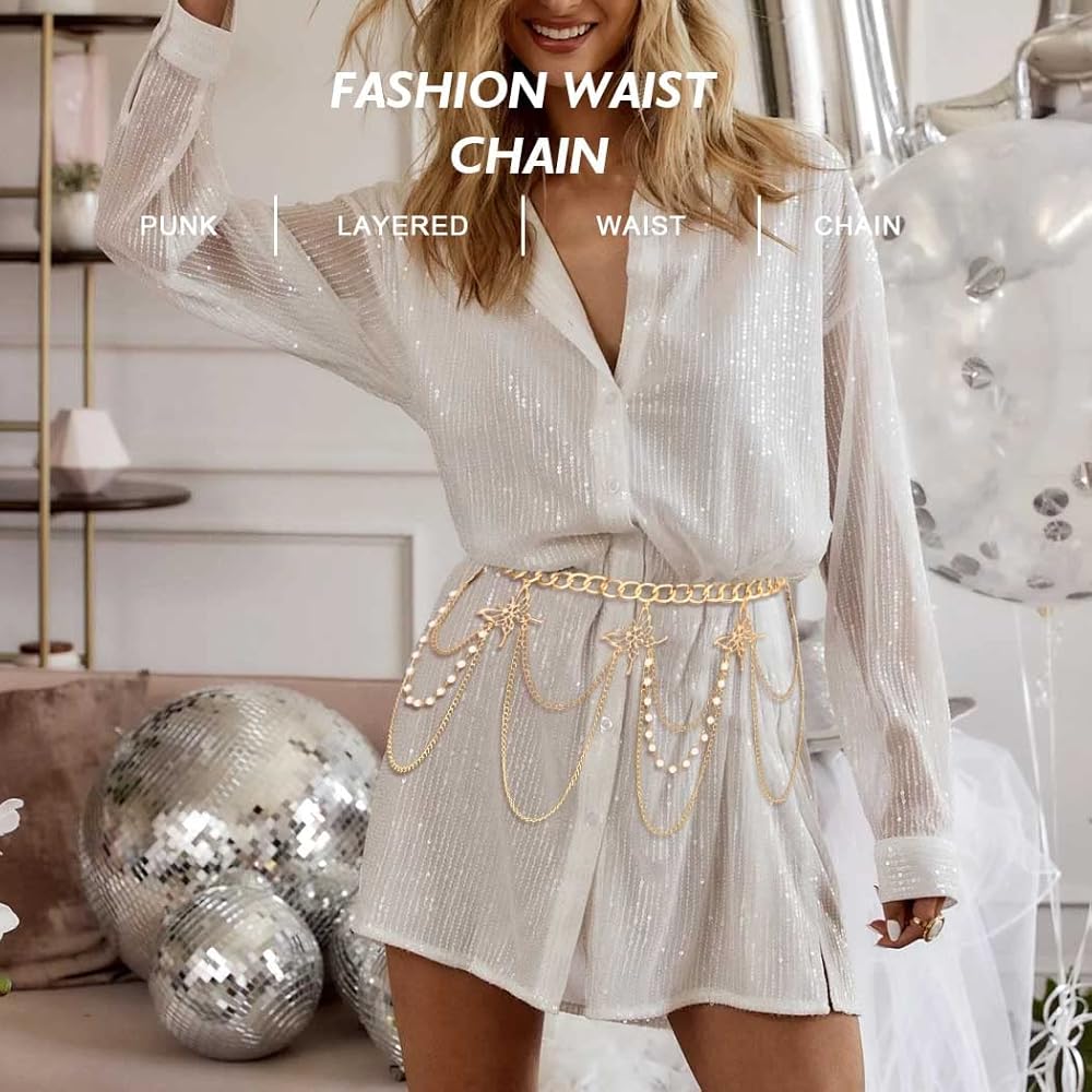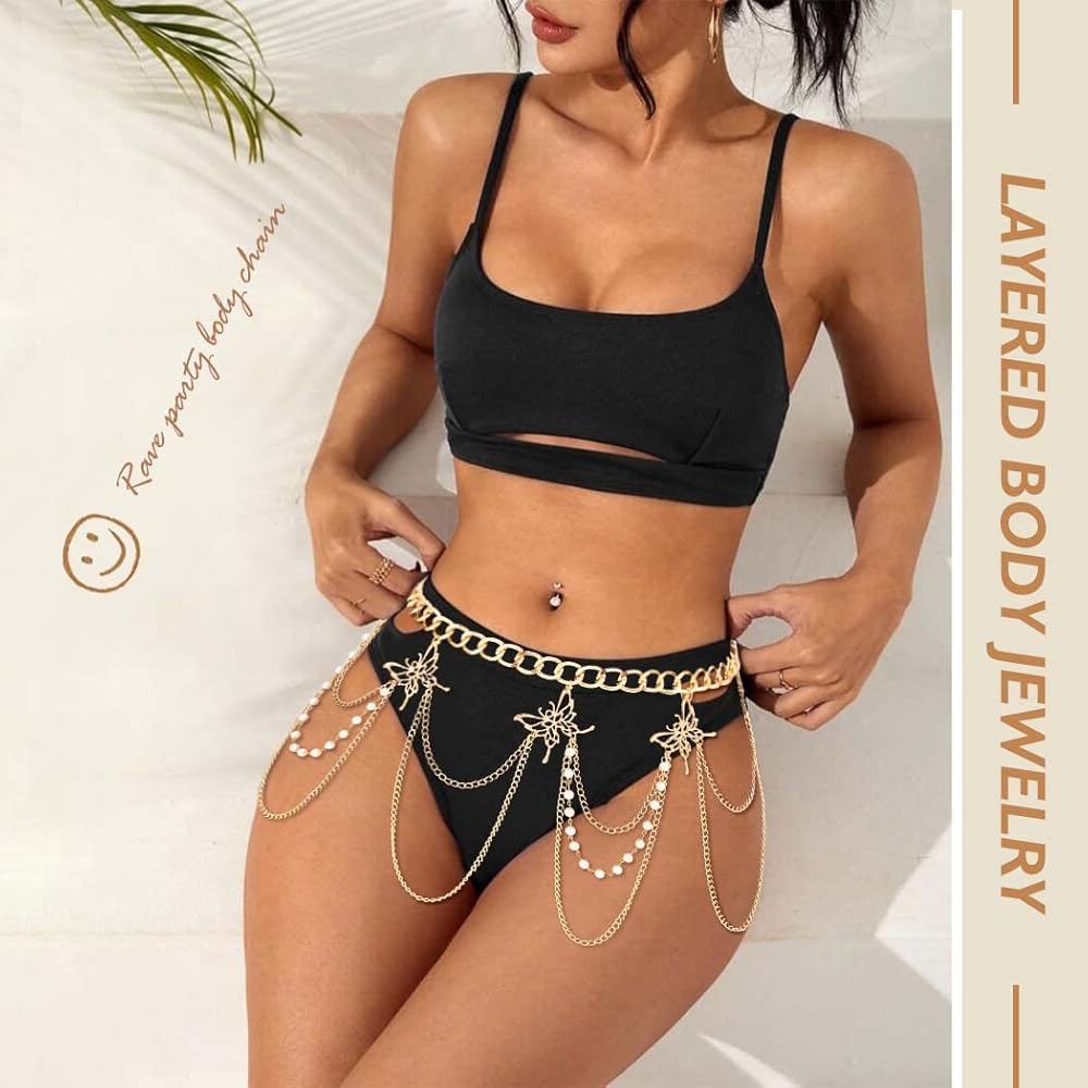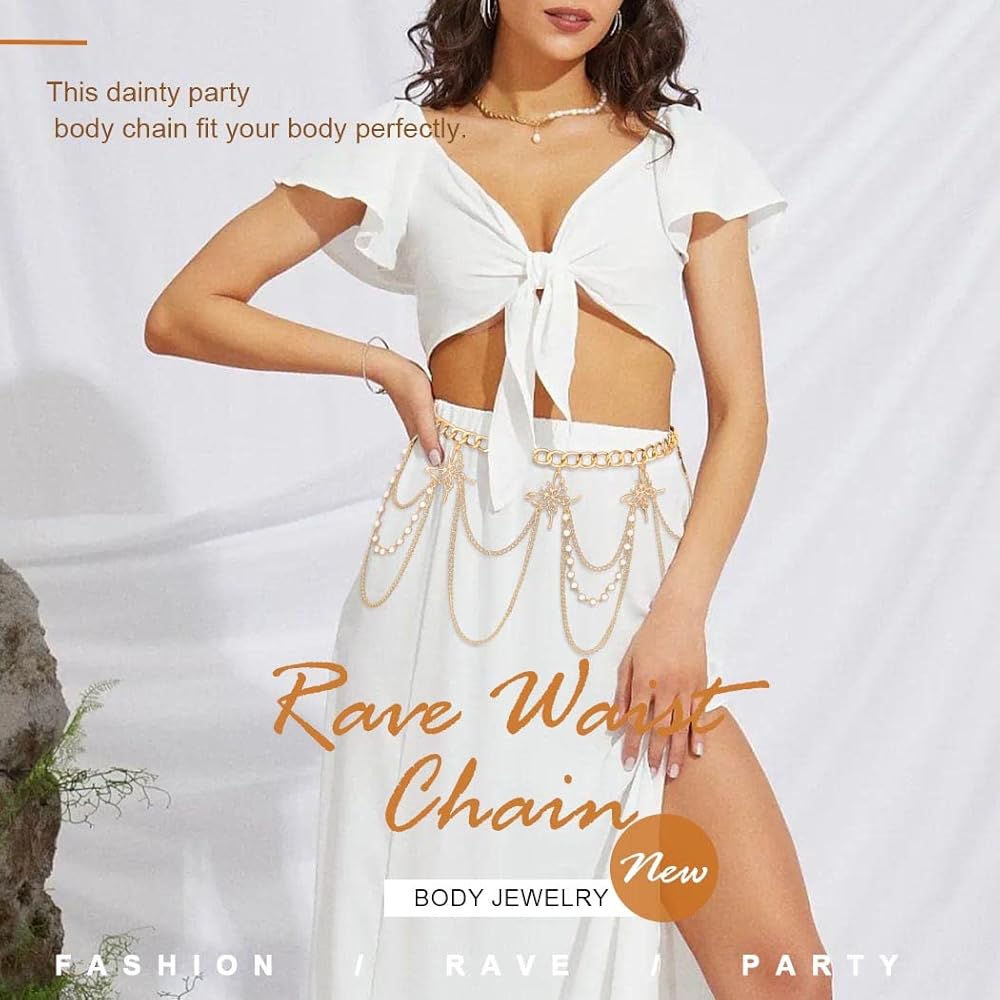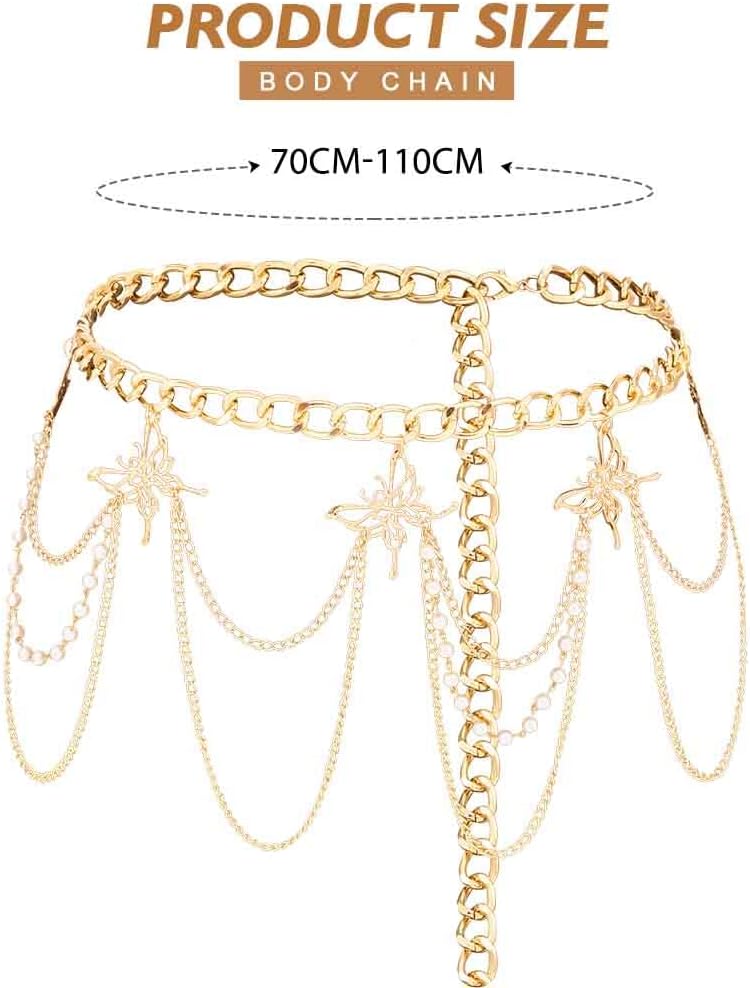 • Layered body chain's waist size is about 110 cm.Free size for women and girls.You can adjust it to your own size to let this dainty party body chain fit your body perfectly.