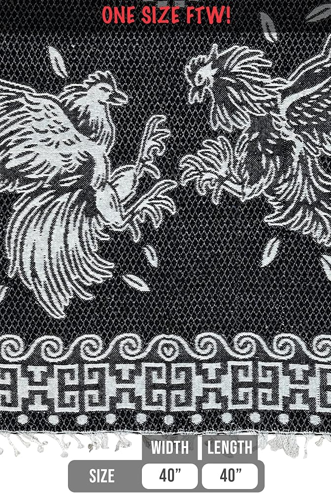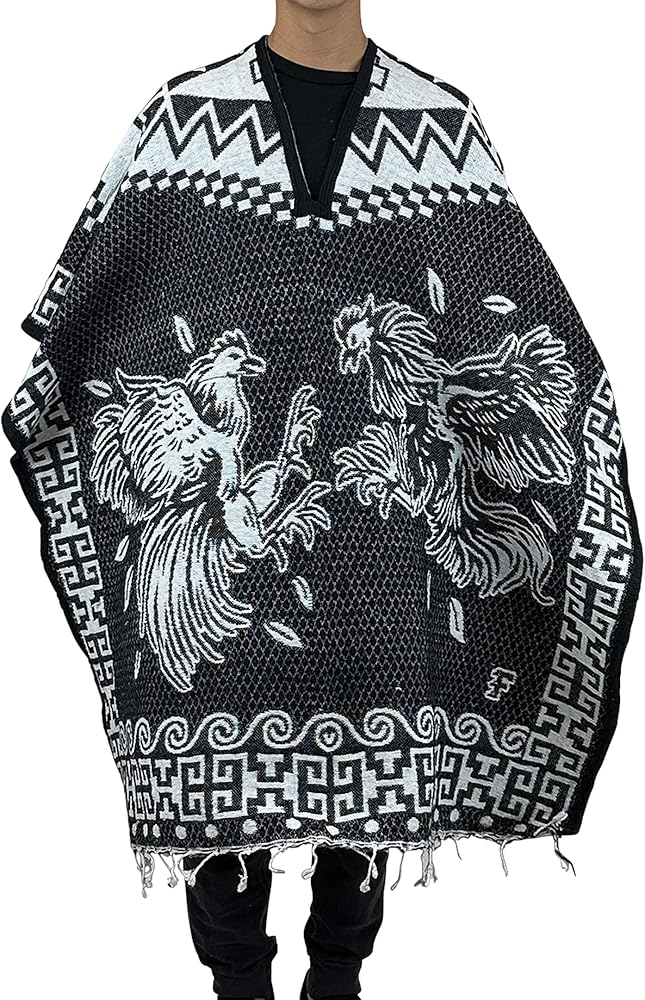 Experience the raw intensity of a timeless cultural tradition with our Cockfighting Roosters Serape. Crafted by skilled artisans in Mexico, this serape encapsulates the age-old practice of cockfightinga sport deeply rooted in various cultures worldwide. Each serape masterfully depicts two roosters engaged in fierce combat, offering an artistic rendition of a classic spectacle. Made from a premium blend of 60% acrylic and 40% polyester, this garment not only catches the eye but also provides lasting comfort and durability. Ideal for enthusiasts of cultural traditions, animal motifs, or unique textile art, this serape serves as a striking fashion statement and a conversation piece. It's a versatile garment that effortlessly transitions from a stylish poncho to a decorative blanket, making it perfect for a variety of settings and occasions.