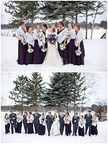 وشاح Yfe للسيدات من الفرو الصناعي طويل من الفرو لحفلات الزفاف من دون أكمام من فرو الزفاف للعرائس ووصيفة العروس