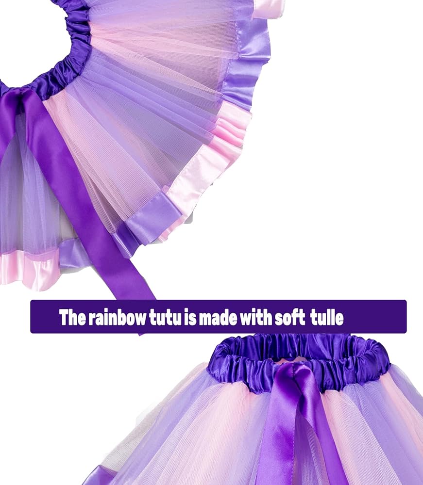 • فستان توتو للفتيات بألوان قوس قزح / تنورة قصيرة توتو باللون الأرجواني الوردي - فستان توتو بشريط قوس قزح للفتيات الصغيرات/الفتيات مصنوع من التول الراقي، رائع للارتداء اليومي. يمكنك بسهولة تزيينها بمجموعة متنوعة من الأزياء اللطيفة أو السراويل الضيقة والسراويل القصيرة وما إلى ذلك.