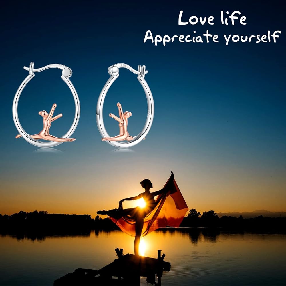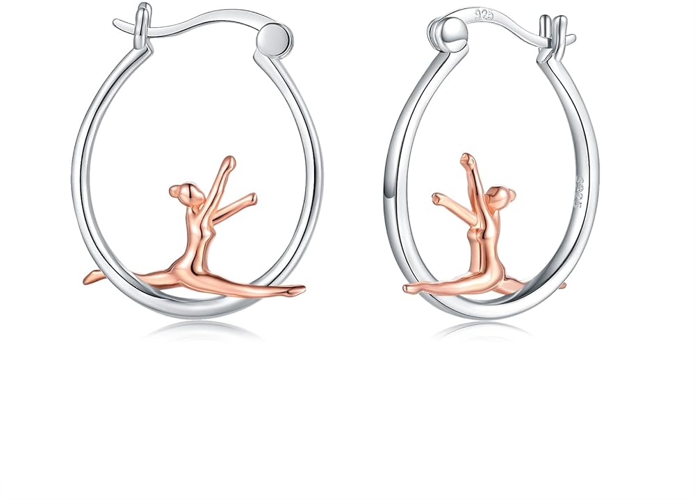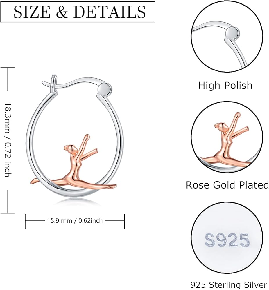 925-Sterlingsilver Ballerina Hoop أقراط للنساء - ذهب أبيض مطلي لا يسبب الحساسية رقصة باليه الرقص بنات هوب أقراط هاجي لطيف راقصة الباليه مجوهرات عيد الميلاد هدية عيد الميلاد للبنات
