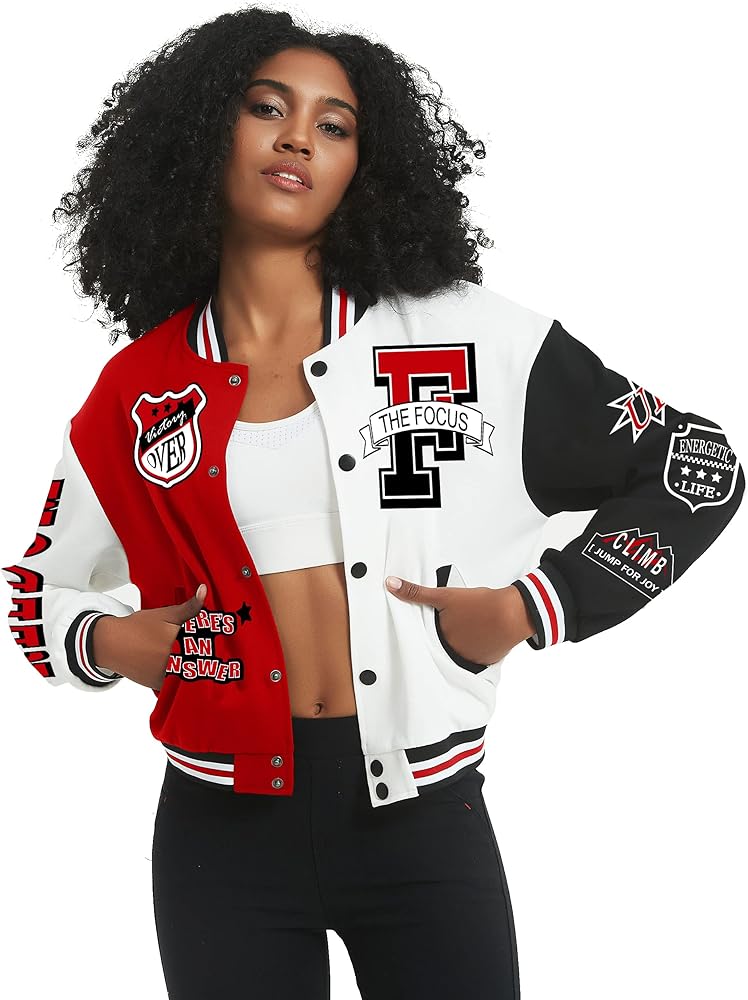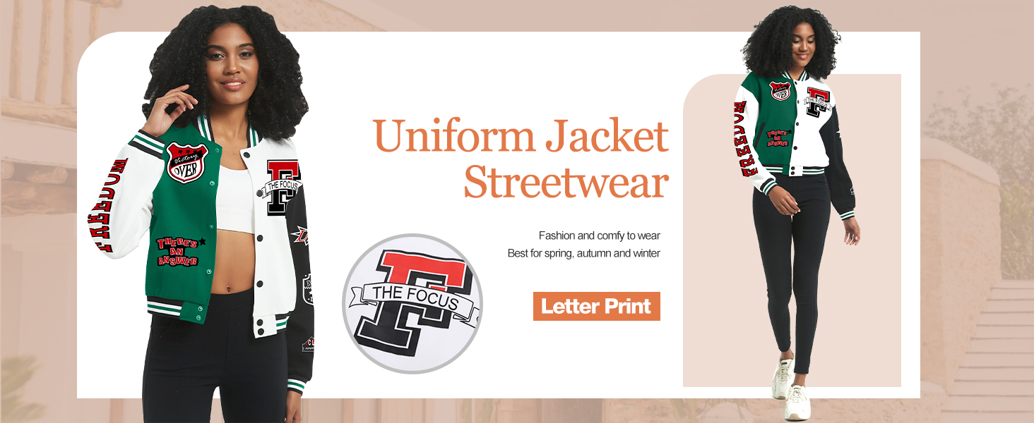 - الخامة: جاكيت بيسبول فارسيتي قصير للنساء، مصنوع من قماش ناعم ومريح، مريح في الارتداء. (بسبب التعليقات الواردة من العملاء، تمت ترقية نسيجنا بالكامل بنسبة 52% قطن و48 ألياف بوليستر)