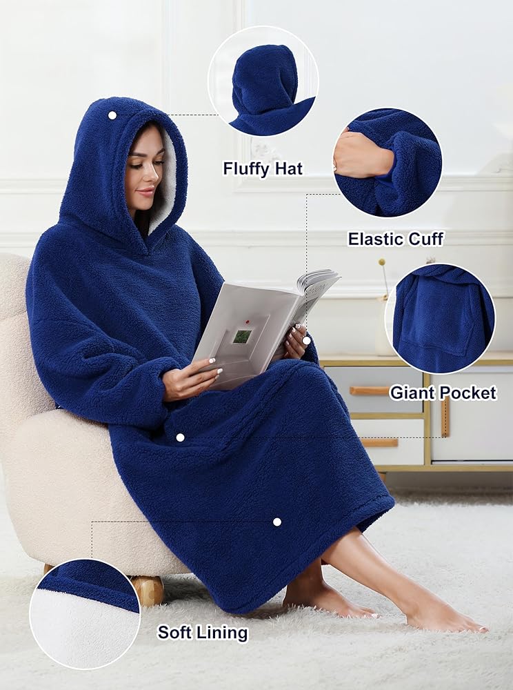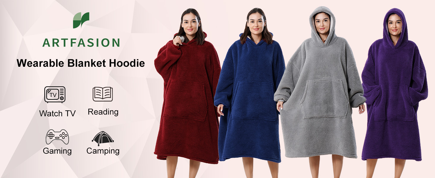 Artfasion Wearable Blanket Hoodie Oversized:Comfy Sweatshirt Blankets with Hood Giant Pocket for Adults Women Men