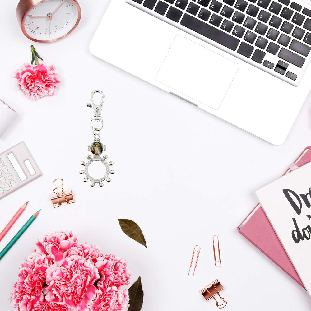 نيدزو الرحمة الإلهية خاتم مسبحة يسوع المسيح، سلسلة مفاتيح دينية فضية اللون، صلاة صغيرة، 3.5 بوصة