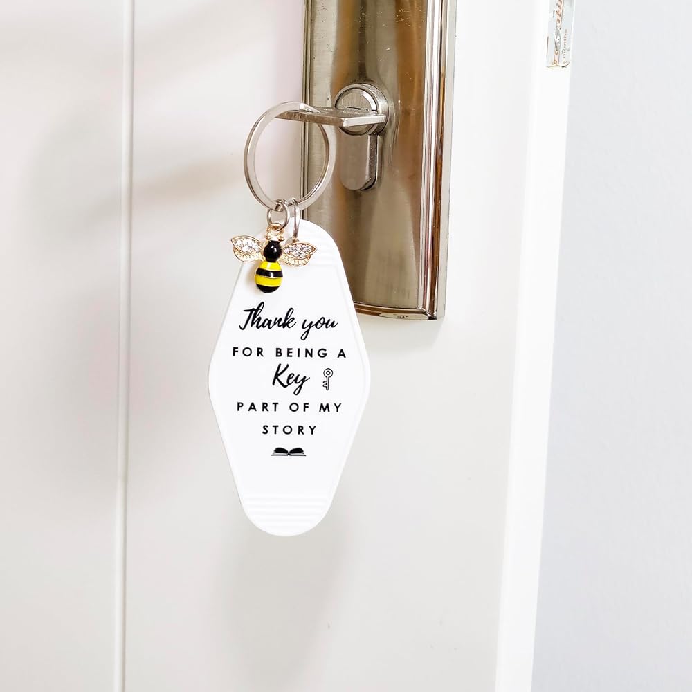 【تصميم فريد】: باستخدام شكل سلسلة مفاتيح الفندق، مزينة بحلي تفاحة ونحلة كريستالية، مطبوعة بكلمات تحفيزية مختلفة، هدايا شكر المعلم الخاصة بنا بسيطة وسخية، فهي خاصة لإرسالها إلى المعلمين.