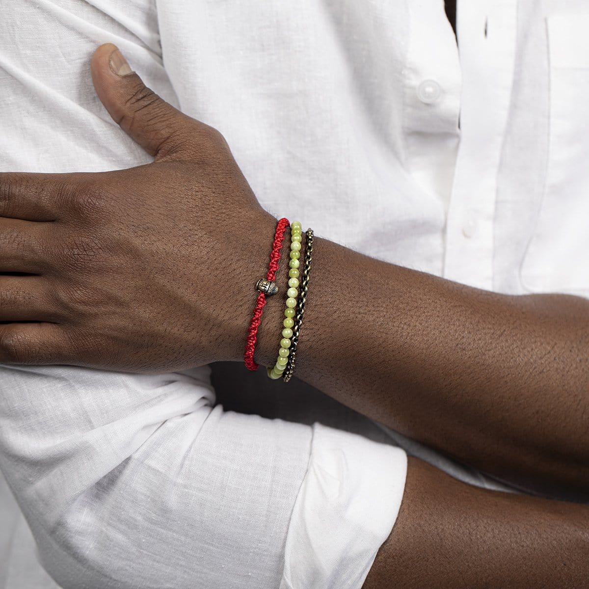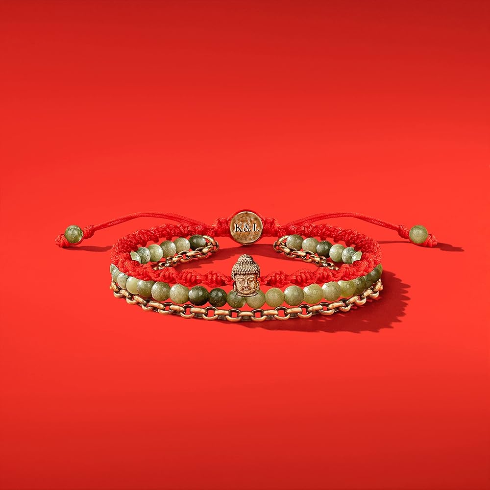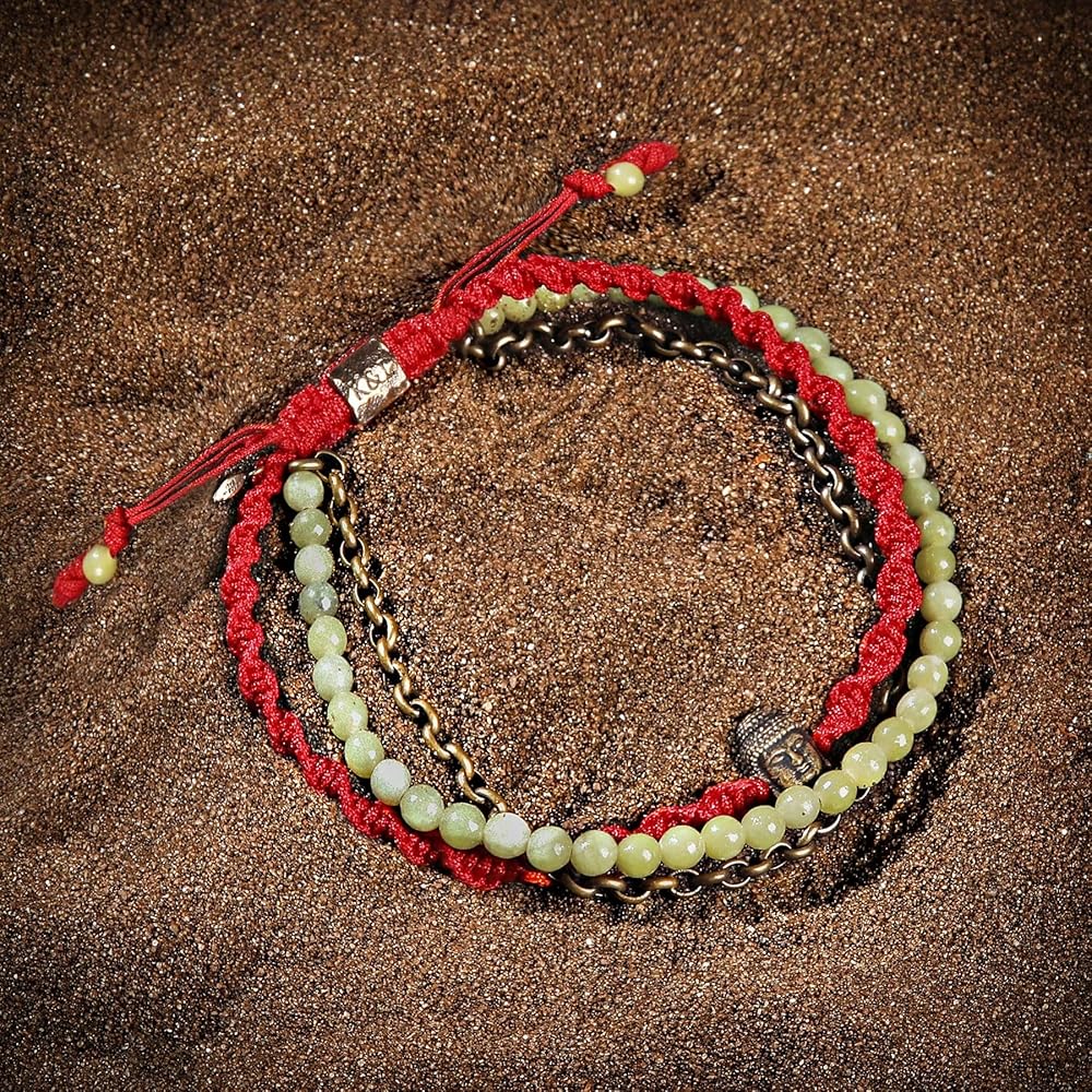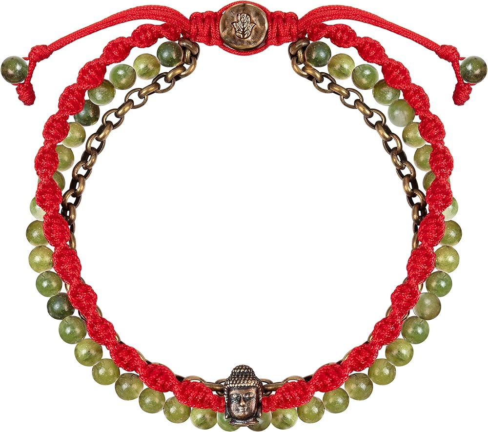 In the balance of body and mind, we discover boundless wisdom and harmony. Discover your full potential and long-term ambitions with our blissful "Prosperous Promise - Jade Buddha Red String Bracelet The serene Buddha symbol enhances your spirituality by bringing peace of mind and purifying your thoughts. Even if you weren't a dreamer, Jade will transform anyone's perspective into a highly optimistic and abundant mindset, which is the needed precursor for success. - Buddha Charm: serenity. - Genuine Jade Stones: abundance, prosperity, cleansing stone. - Antique Bronze Red String Bracelet. - Adjustable Drawstring Closure from 7.5" to 10". - Culture: handmade in Bali.