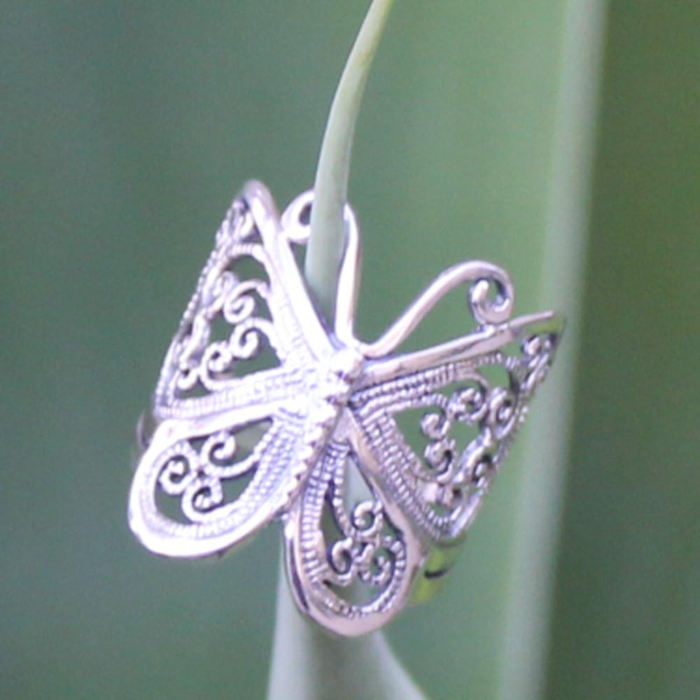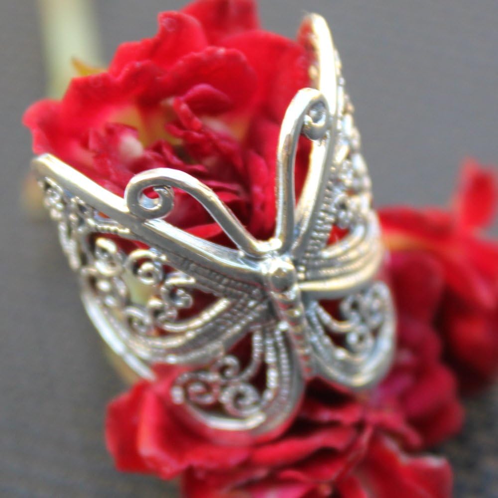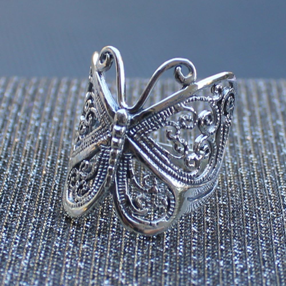 فراشة تخريمية صلبة .925 مقاسات خاتم الفضة الاسترليني 4-13