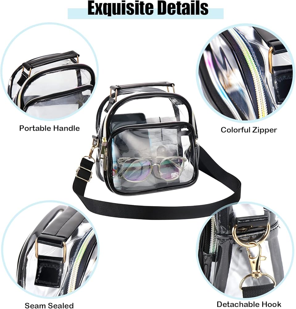 【حزامان للكتف قابلان للتعديل】- تحتوي الحقيبة الشفافة المعتمدة على حزامي كتف بأنماط مختلفة، يمكنك الاختيار وفقًا لملابسك، كما يساعدك حزام الكتف القابل للتعديل على تغيير الأنماط المختلفة مثل المحفظة الشفافة، وحقيبة اليد الشفافة، وحقيبة كروس شفافة وحقيبة شفافة. حقيبة كتف.