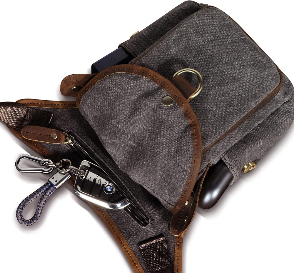 النمط: إنها حقيبة حول خصرك وساقك مصنوعة من القماش والجلد الطبيعي. غطاء قلاب بإبزيم مغناطيسي من النحاس. تحتوي على قطعة واحدة من حزام الخصر القابل للتعديل مخيط على الحقيبة، مناسب لمقاس خصر الأشخاص من 84 إلى 128 سم (33.07 -50.39 بوصة). وحزام ساق قابل للإزالة من قطعة واحدة (40-75 سم/15.74-29.52 بوصة) للسماح بحمله على خصرك وساقك بشكل أكثر راحة وأمان.