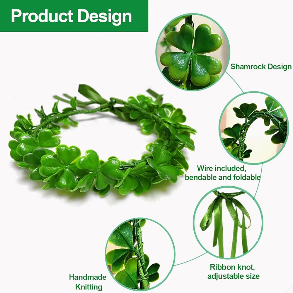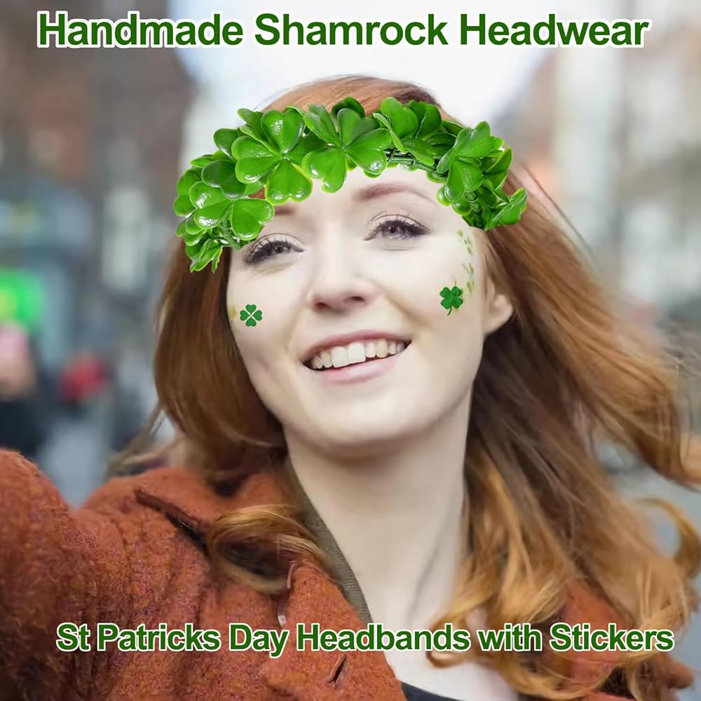 إكسسوارات يوم القديس باتريك الفريدة: عصابة رأس منسوجة يدويًا بعناية، تحت عنوان البرسيم الأخضر المحظوظ، مما يضيف أجواء احتفالية خاصة للاحتفال بعيد القديس باتريك.