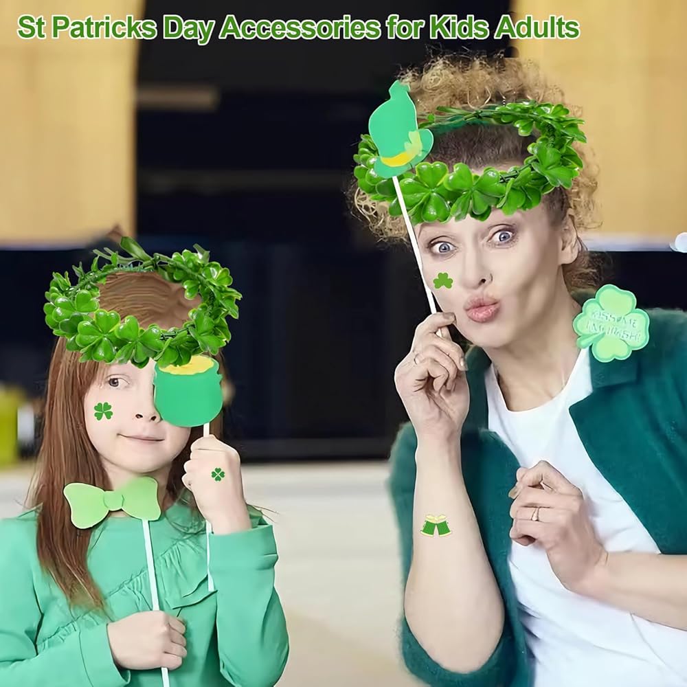 ملصقات بنمط عشوائي مجانية: تشتمل كل مجموعة على 2 عصابة رأس من نبات النفل و2 ملصق عشوائي لعيد القديس باتريك، مما يوفر المزيد من خيارات الأعمال اليدوية والديكور، مما يعزز الاستمتاع الشخصي.