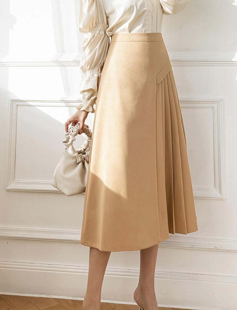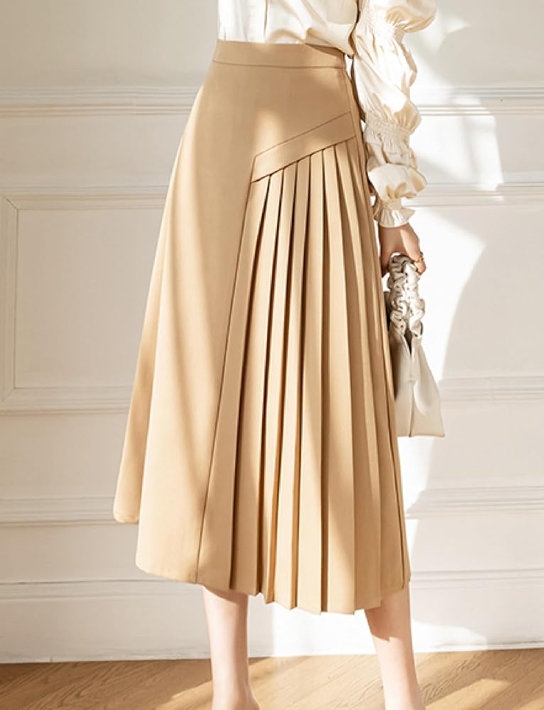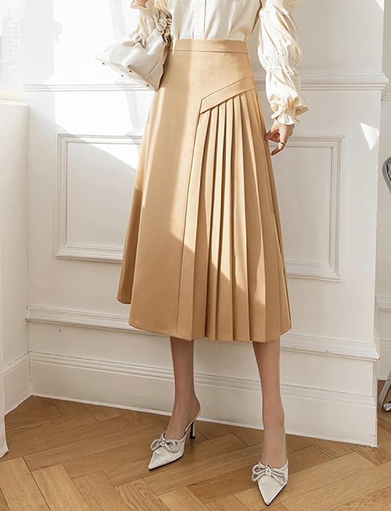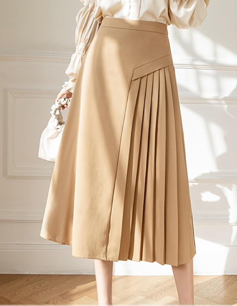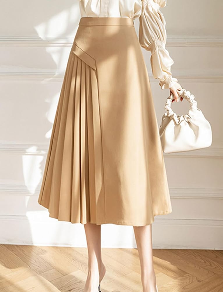 التصميم: تتميز هذه التنورة على شكل حرف A بتصميم مطوي غير متماثل يضيف لمسة فريدة وأنيقة إلى ملابسك. يبرز الخصر العالي منحنياتك مع توفير صورة ظلية جذابة.