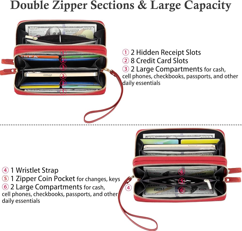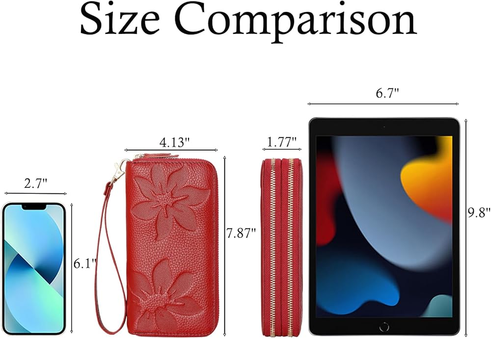 • 【محفظة معصم وسحاب حول】تحتوي محافظ المعصم ذات السحاب للنساء على حزام معصم قابل للفصل مثالي للنساء المشغولات أثناء التنقل ويتناسب بشكل آمن حول معصمك، ويبقى منظمًا في أي وقت، ومريح وآمن. حجم المحفظة الجلدية للنساء مع جيوب للهاتف الخلوي هو 7.87 بوصة × 4.13 بوصة × 1.77 بوصة، وهي كبيرة بما يكفي لحمل معظم أحجام الهواتف.
