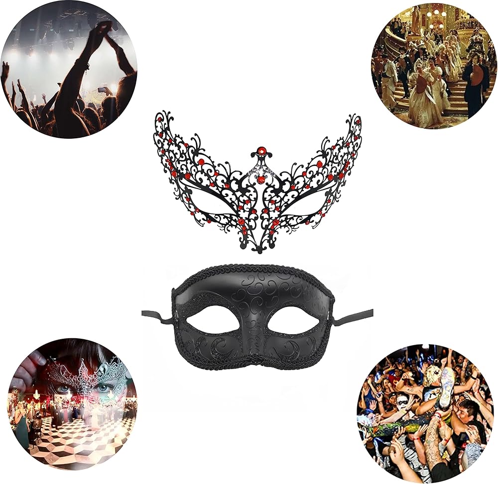 • 🍻[PARTY ESSENTIAL ACCESSORIES]: Couple masks are perfect for masquerade, carnival, party dance, halloween, Christmas carnival masquerade, costume cosplay parties, night clubs, weddings, fashion shows, mask events, etc.
