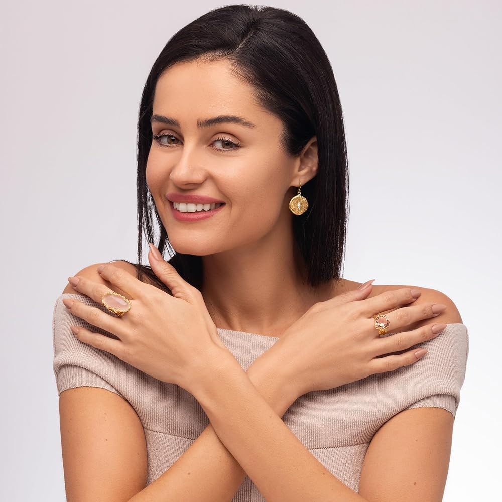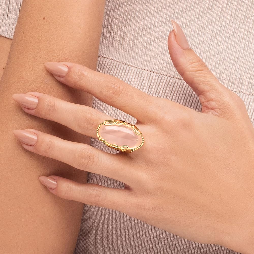 كن ملهمًا - استمتع بالمنظر. استمتع بالألوان والأشكال والأنماط. هذه الأقراط الأنيقة والخالدة، مصممة لتكون خيارك المفضل في أي مناسبة. التفاصيل: المعدن: 1 ميكرون من الذهب عيار 14 قيراط فوق الحجر الفضي الإسترليني: الكوارتز الوردي الحجم: 14 × 28 ملم الوزن الإجمالي للقيراط: 19.05 قيراط. متوفر بمقاسات 5، 6، 7، 8، 9، 10 و11. يتم قياس هذا الخاتم بعرض الكتفين 0.4، العرض السفلي 0.08، العرض العلوي 1.2، السمك 0.05 (الأبعاد بالبوصة)