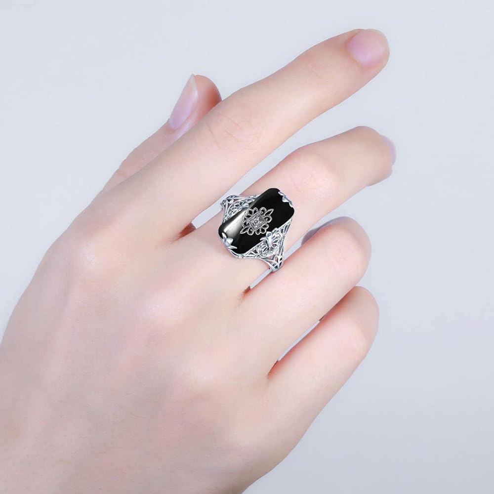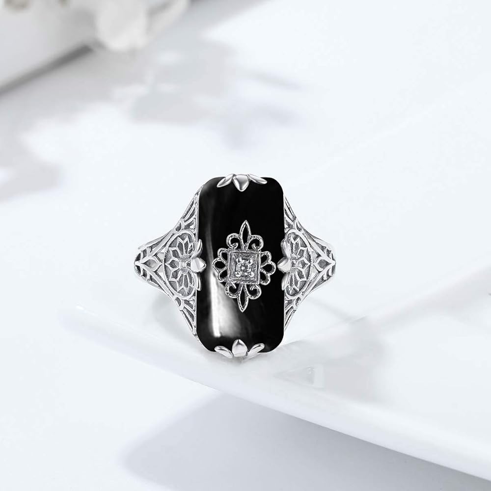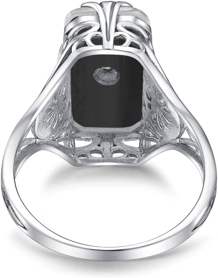 ✿UNIQUE DESIGN✿:Our now offer this lovely Sterling Silver Rings For Women Men Antique Art Deco/Edwardian design ring in sterling silver. This gorgeous ring is set with a stunning floral filigree embellished white glass/resin with a centered set 1mm white CZ.ღ