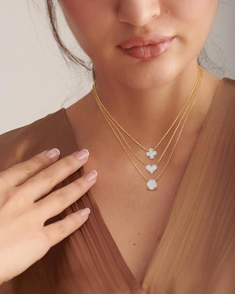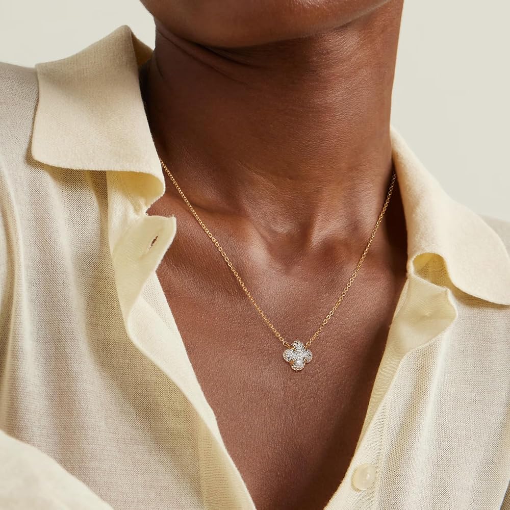 ✦قلادات سوليتير أنيقة ✦: تتألق قلادة الزهرة الخاصة بنا لأنها توضع في هالة من أحجار الزركونيا المكعبة. ببساطة رائعة وساحرة! قلادة ذهبية أنيقة للغاية، قلادة الماس هي قلادة كلاسيكية لكل امرأة. سيضيف هذا الجمال الصغير المتلألئ لمسة من الأناقة إلى أي شيء ترتديه. مثالي لكل يوم وأي ليلة.