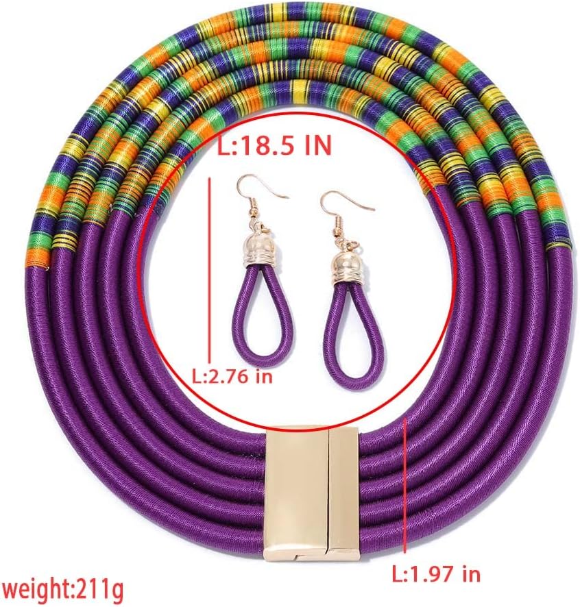 • African Necklace Size: 47CM/18.5IN. Colors:red, green and purple.