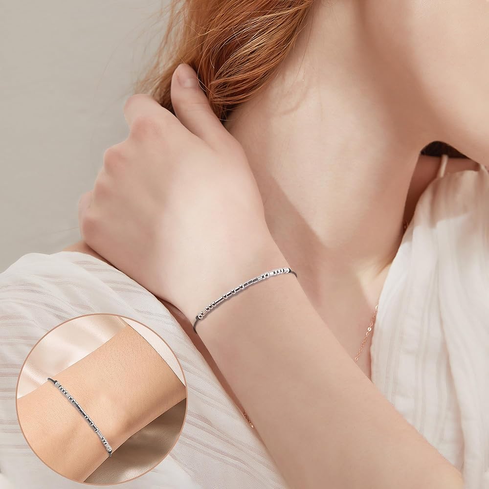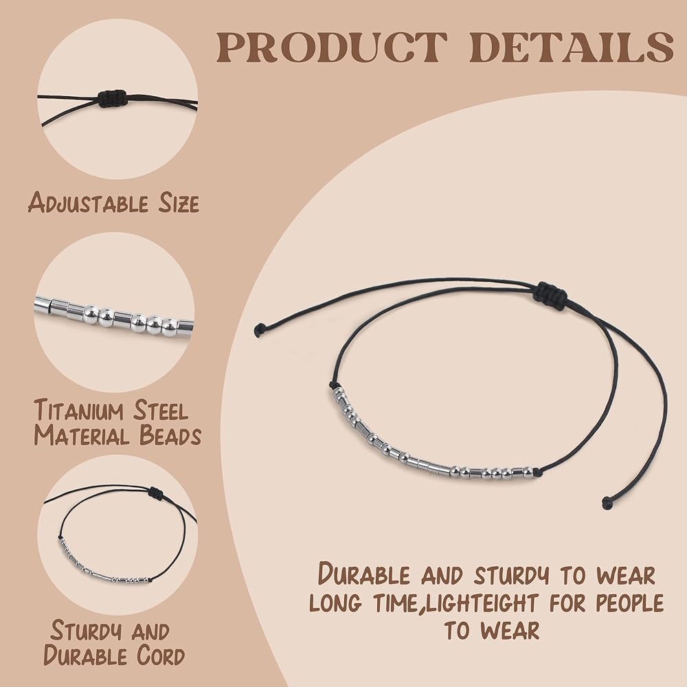 Morse Code Bracelets for Women Men Friends Titanium Steel Beaded Bracelets Inspirational Gifts Handmade Jewelry for Women