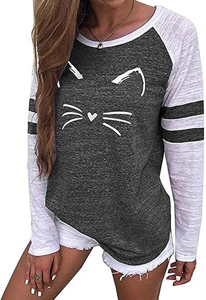 فوتورينو للسيدات بلوك بلوك كات طباعة قميص قميص قصير الأكمام رميت قميص قميص غير رسمي