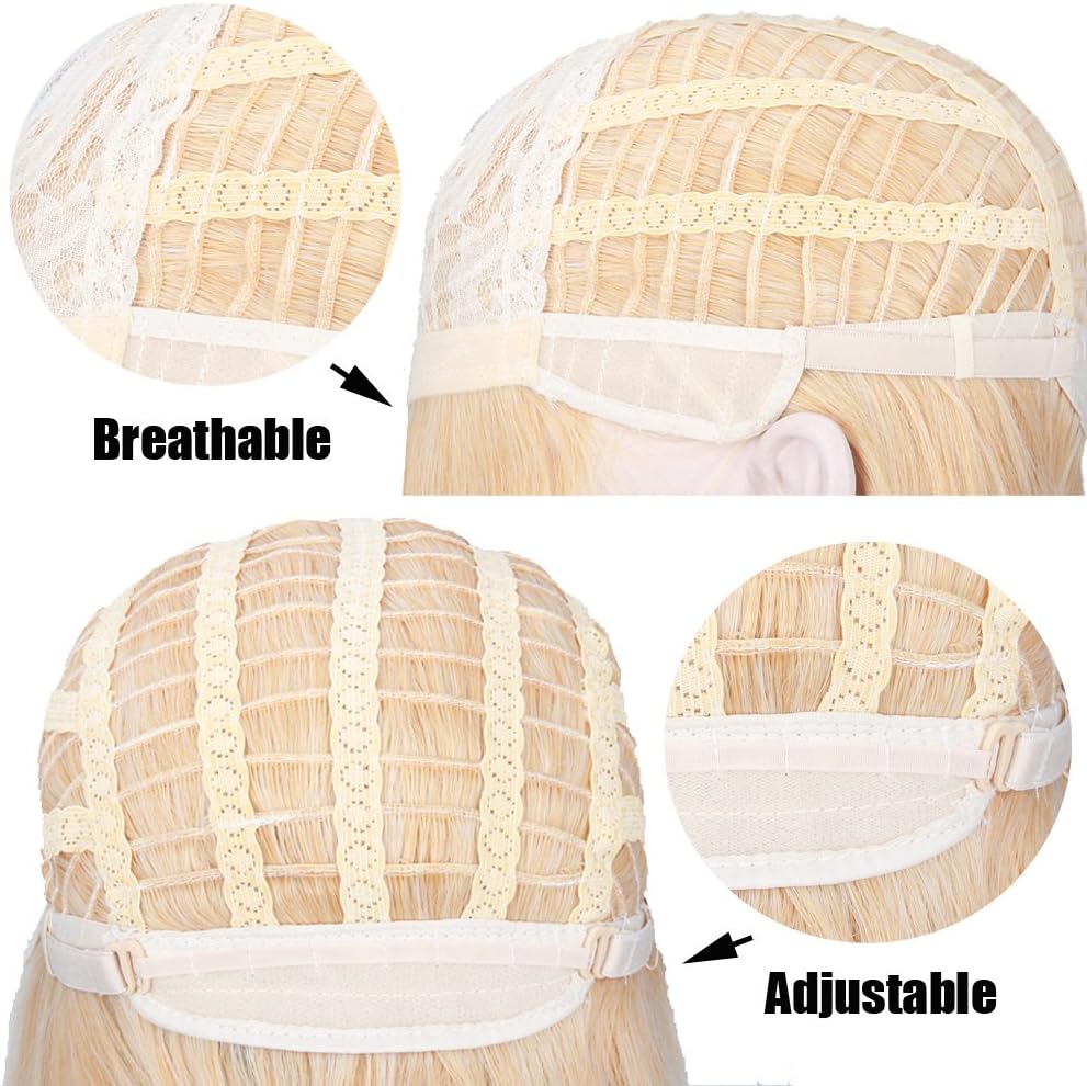 مقاس القبعة: حوالي 52.5 سم مع أشرطة قابلة للتعديل، 2 من الأشرطة القابلة للتعديل يمكن أن تساعدك في تعديل مقاس قبعة الشعر المستعار أقل أو أكثر للحصول على 2.5 سم إلى 3.8 سم.