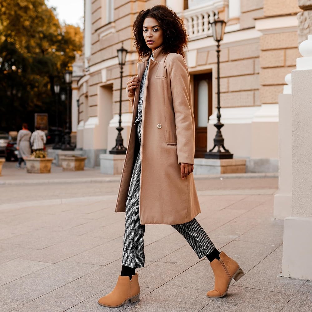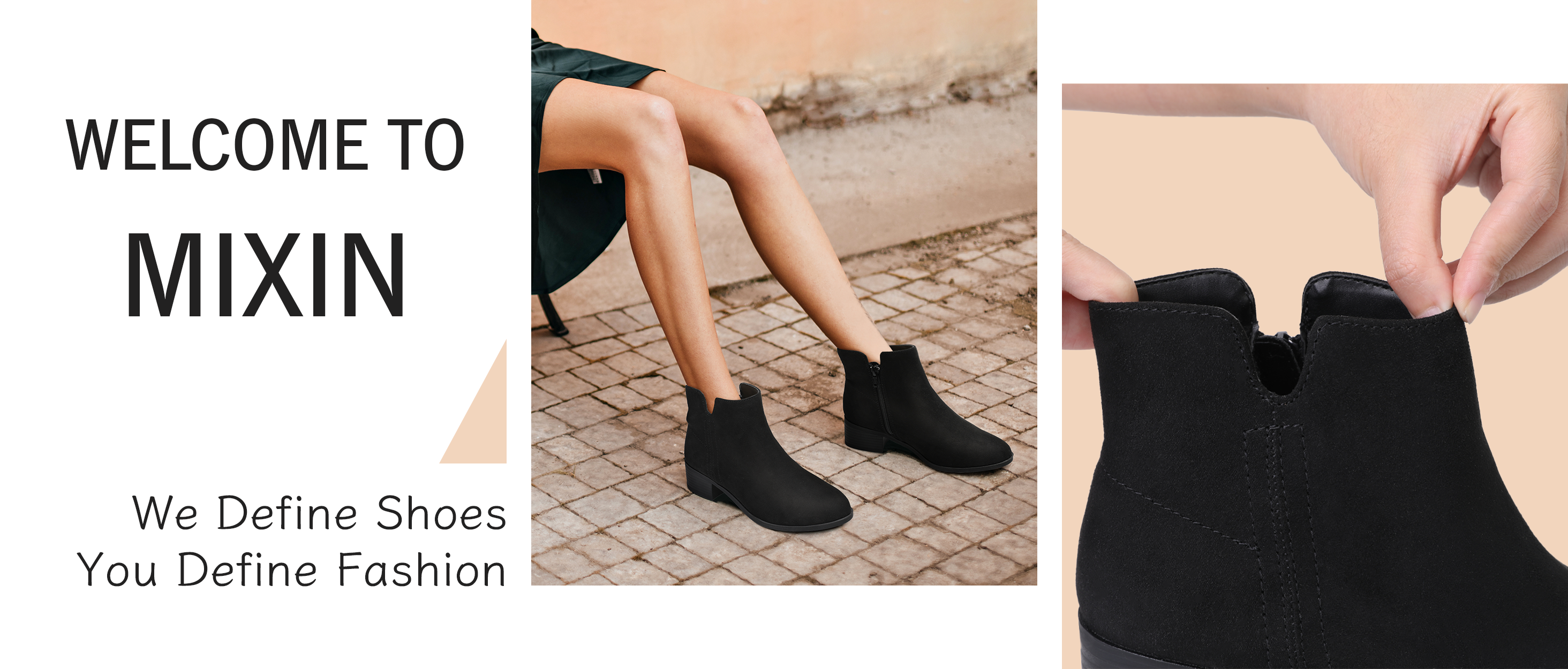أحذية نسائية للكاحل بكعب مكدس مكتنز وسحاب كامل الطول لسهولة الارتداء والخلع، أحذية نسائية بسحاب ولن تتشوه بسهولة. كما أن الأحذية النسائية ذات الكعب العالي لن تسقط أثناء المشي.