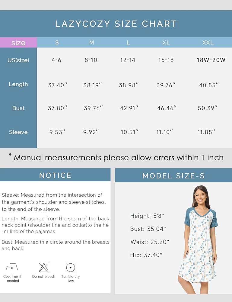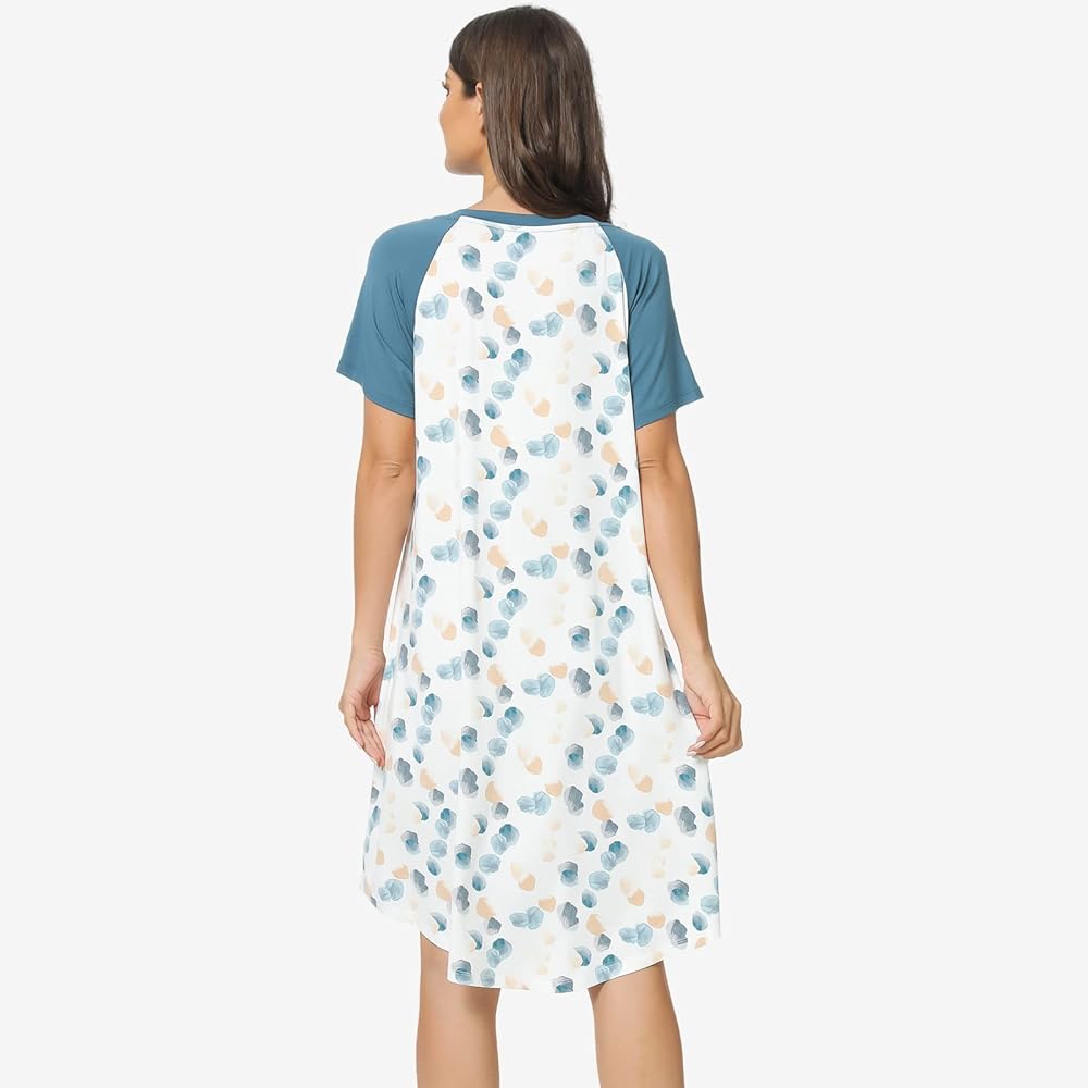 راحة طوال الليل: فستان المنزل للسيدات جيد التهوية، لذلك يسمح للهواء بالمرور من خلاله بحرية، مما يساعدك على البقاء باردًا وجافًا. إذا كنت تعاني من التعرق الليلي والهبات الساخنة، فإن قميص النوم المطبوع هذا يسمح لك بالنوم بشكل أفضل