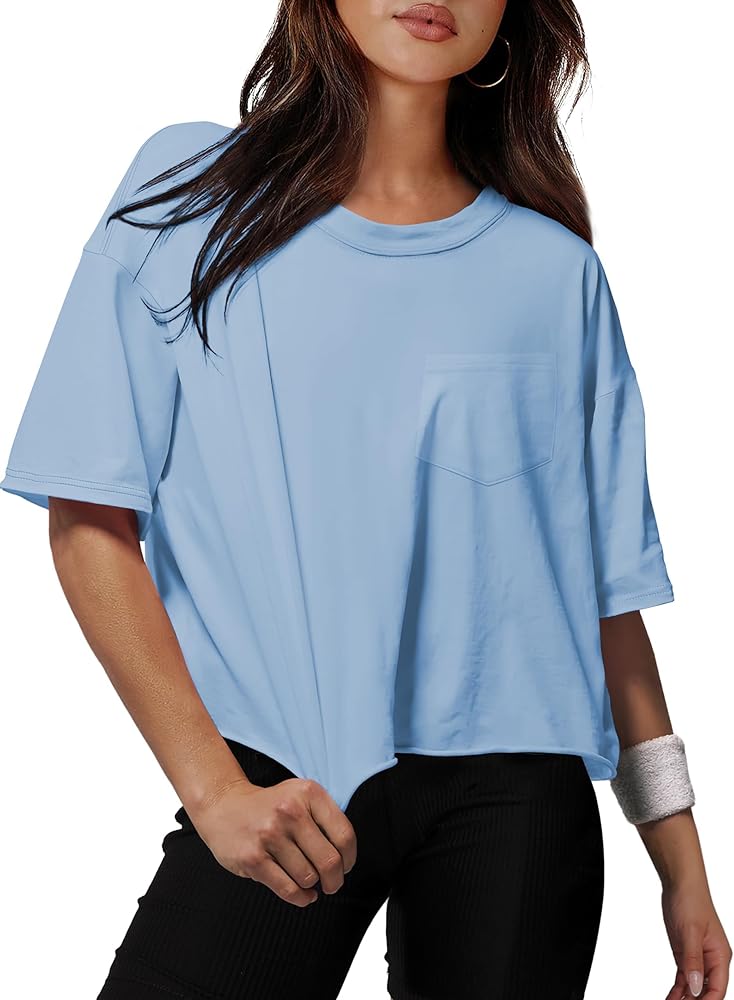 • 👑【تصميم فريد】: تي شيرت صيفي بأكمام قصيرة، رقبة دائرية، لون موحد، جيب، فضفاض للنساء. مقاس كبير، صديقها، عتيق، أساسي، تي شيرت نسائي قصير عصري. تفاصيل بسيطة تجعل هذه القمصان اللطيفة كبيرة الحجم مريحة للغاية وأنيقة. الاغراء على أي أنواع الجسم.