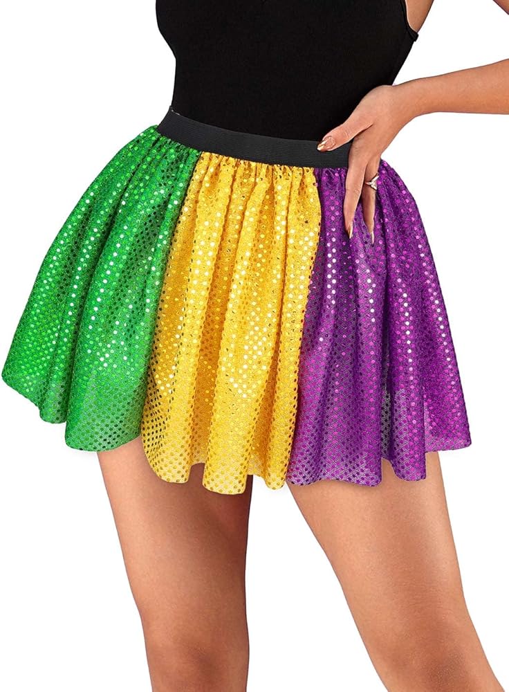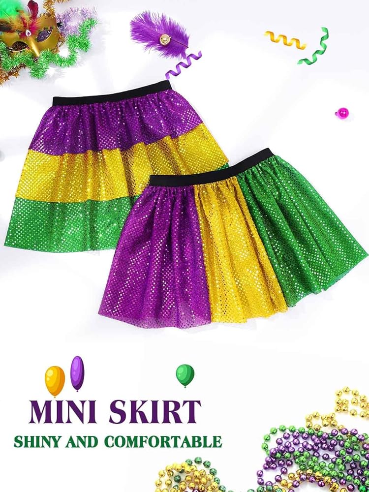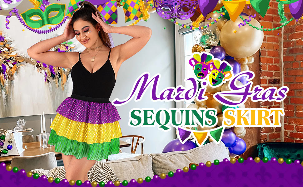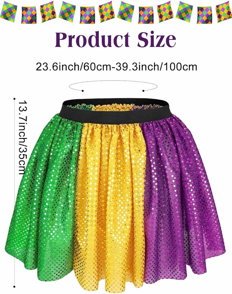 Festival sequins tutu skirt design with purple, glod and green color make you enjoy the carnival and match your outfits well.