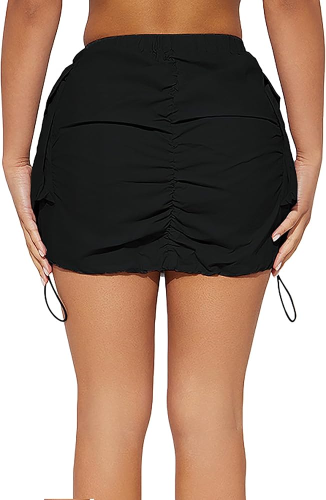 الميزات - خصر مرن، مكشكش من الأمام، عقدة جانبية وجيوب جانبية، تنانير قصيرة للنساء