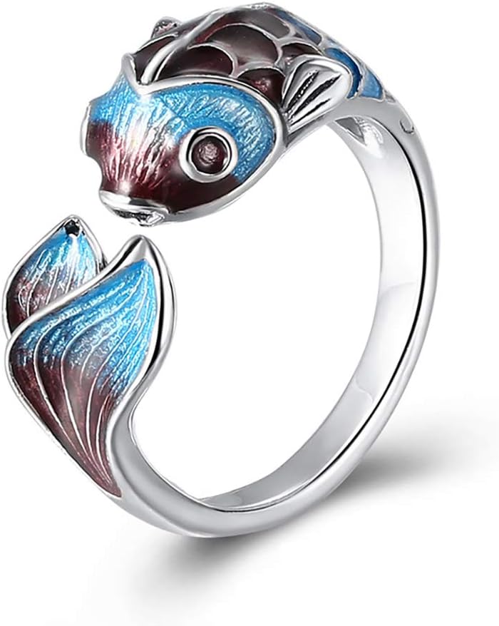 【التصميم】: صناعة مصوغة بطريقة تقليدية تجعل خاتم السمك الأزرق نابض بالحياة وملون. أفضل خيار للارتداء اليومي ومجموعة المجوهرات. إنه ناعم من الداخل ومريح في الارتداء. طلاء مضاد للبهتان يحافظ على بريقه ولمعانه لفترة طويلة.