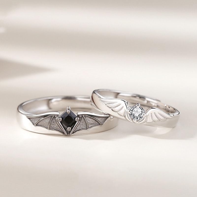 WLLAY Angel Devil Wings Open Rings Couple Matching Rings for Women Man Adjustable Promise Rings Set Black White Friendship Rings Valentine's