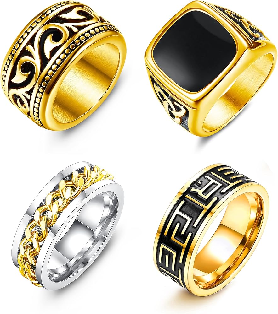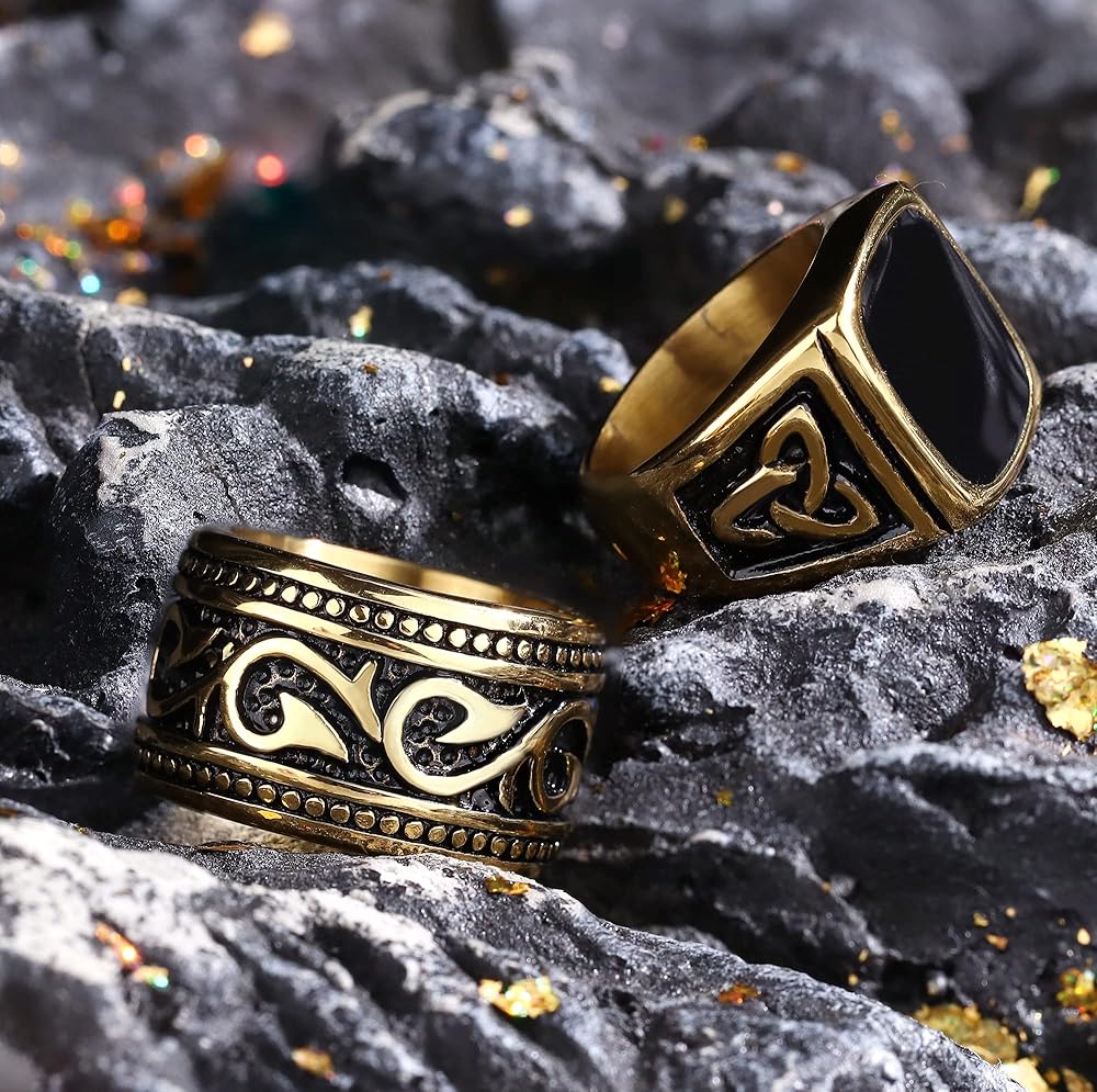 • 【مجموعة خواتم رجالية】طلب واحد يتضمن 4 قطع من حلقات الفولاذ المقاوم للصدأ بتصميم مختلف. حلقة سلتيك أيرلندية عتيقة، حلقة عريضة للإبهام، حلقة منقوشة للرجال، حلقة فيدجيت بسلسلة كوبية. صناعة يدوية قديمة مع نحت رائع، نمط شخصي رائع، مما يمنحك غامضًا وفاخرًا إحساس.