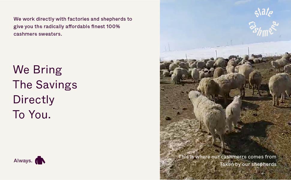 OUR MISSION: At State Cashmere, we promise to empower our shepherds, bring you luxurious cashmere fashion for less with no middleman and practice consistent sustainability so you can build a premium capsule wardrobe that will last you a lifetime.