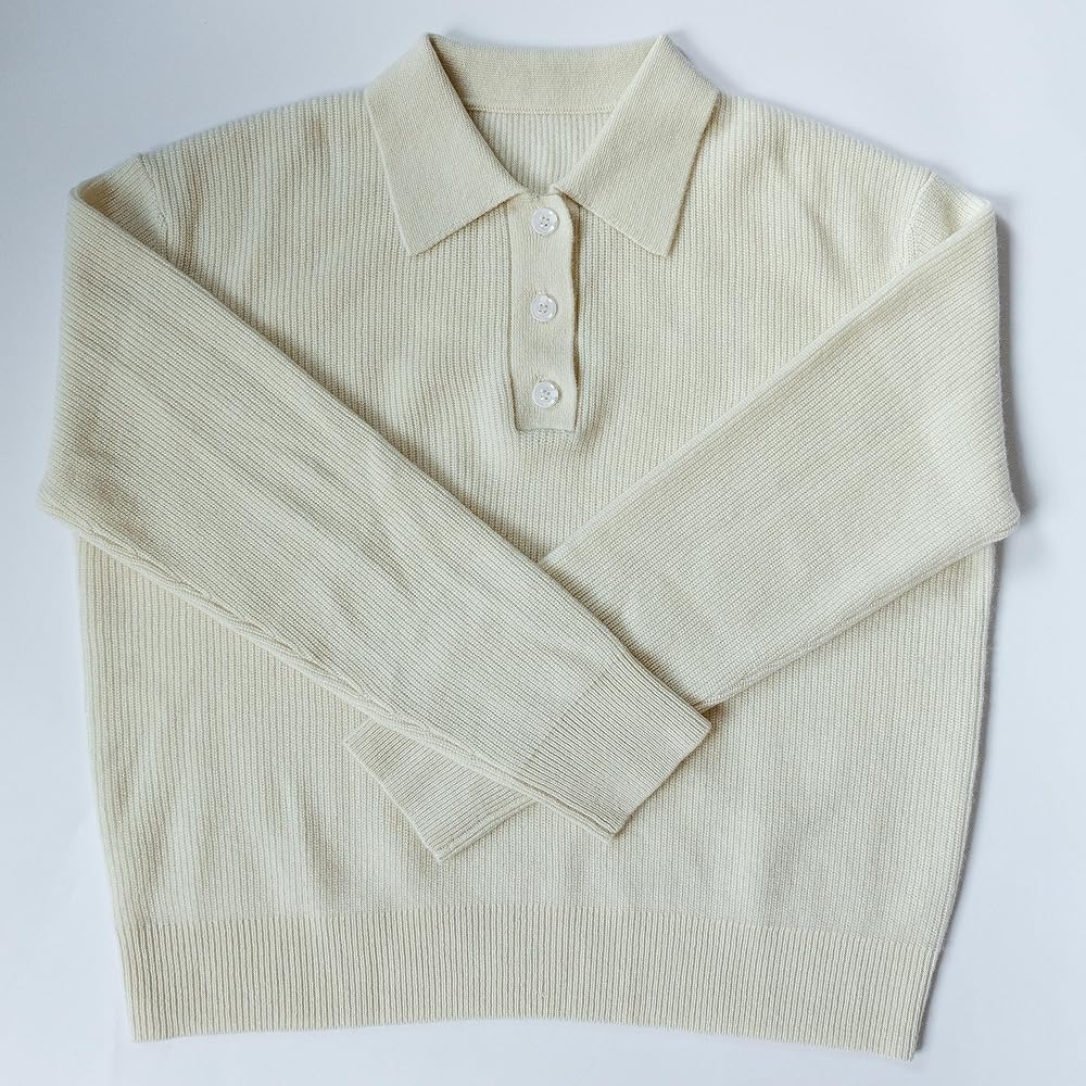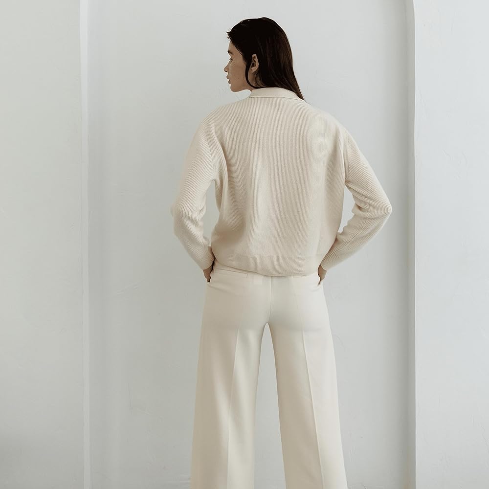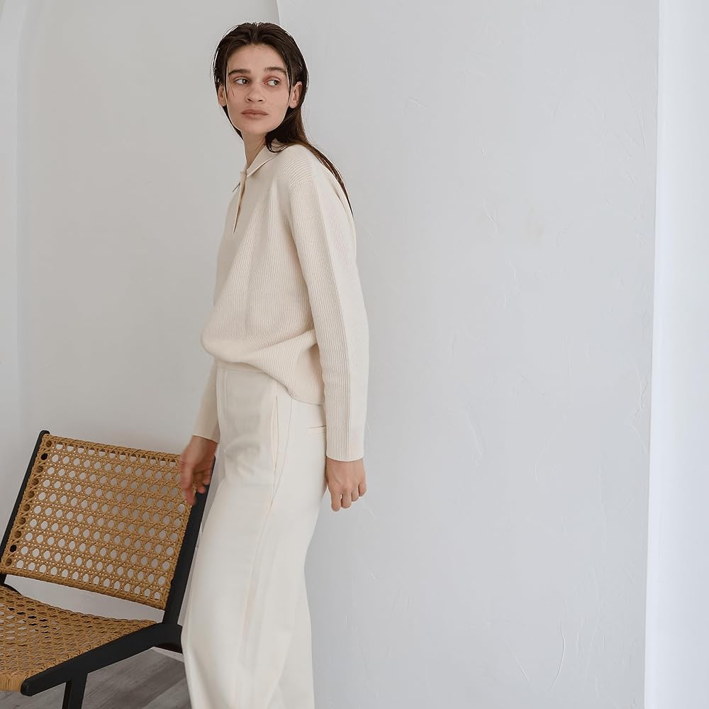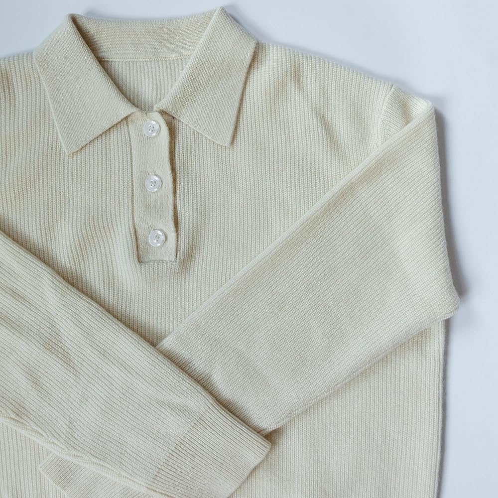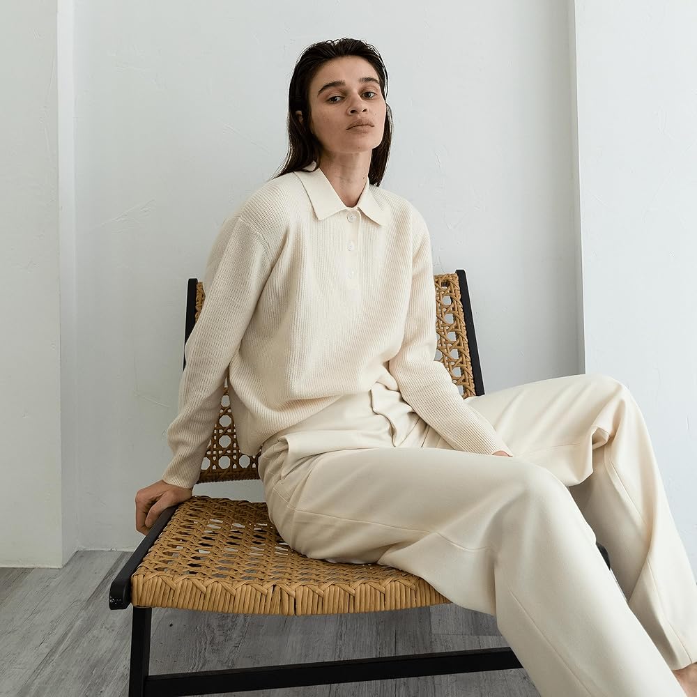 LIGHTWEIGHT & VERSATILE: Elevate your wardrobe with the Pure Cashmere Ribbed Polo Collar Sweater with Buttons. A modern twist on a timeless classic, this luxurious sweater adds a touch of sophistication to any outfit. The ribbed design and graceful buttons offer a refined look that complements various ensembles. Crafted with a snug 12 gauge knit and tightly twisted 2-ply yarns, this cozy sweater fits perfectly, creating an effortlessly polished appearance.