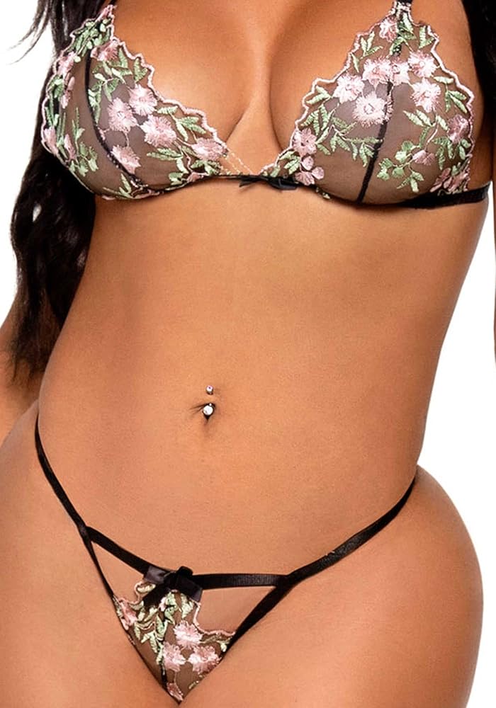 Leg Avenue 81649-00202 2 Pc Embroidered Floral Sheer Bra And G-String Panty, Medium, White