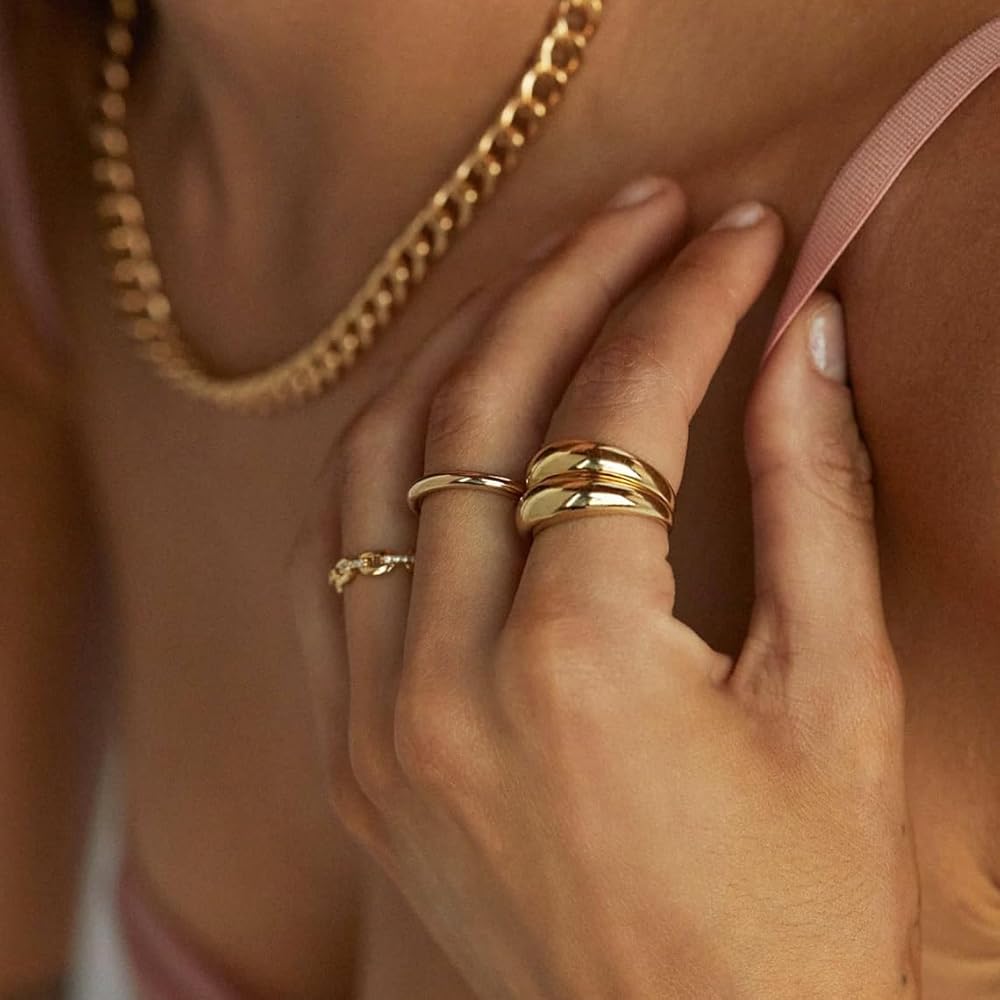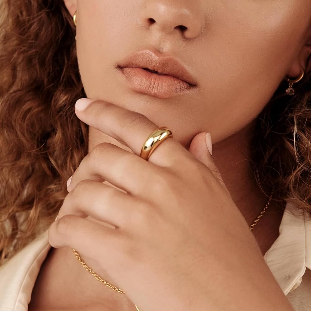【خواتم فضية مكتنزة للنساء】 خاتم القبة الخاص بنا هو الزينة المثالية كخاتم كلاسيكي جريء ولكنه بسيط وخفيف الوزن للاستخدام اليومي. هذه الخواتم اللطيفة لامعة جدًا ومصممة على الموضة، وهي إضافة جميلة وبسيطة لملابسك اليومية.