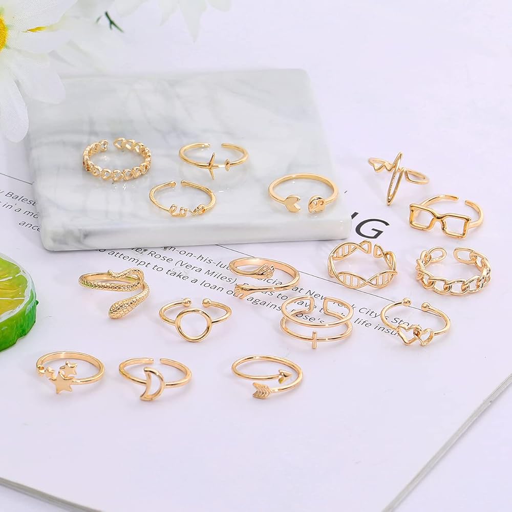 مجموعة خواتم الفتيات المراهقات يحتوي الطلب الواحد على 16 طرازًا مختلفًا من الخواتم النسائية القابلة للتكديس، معبأة معًا في حقيبة مخملية، بما في ذلك حلقة النجوم، خاتم القمر، خاتم العناق، خاتم الأسهم، خاتم الأفعى، حلقة النظارات، حلقة المموجة... الأنماط الأنيقة تكفي لتلبية أي متطلبات المطابقة اليومية.