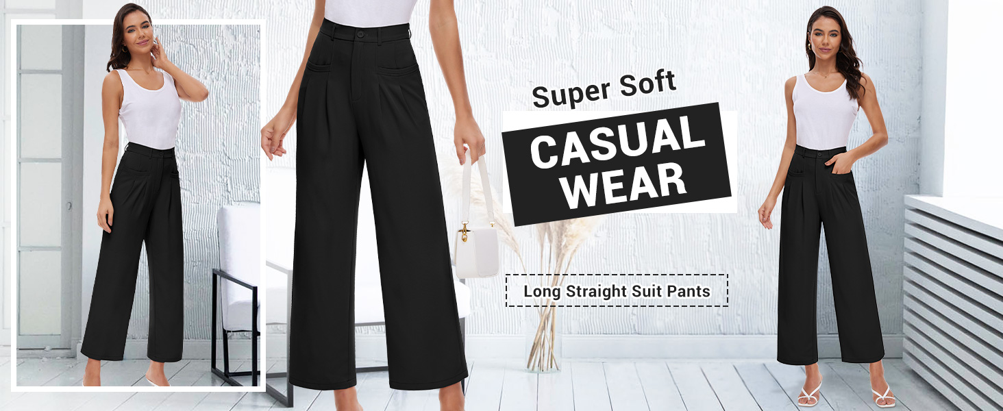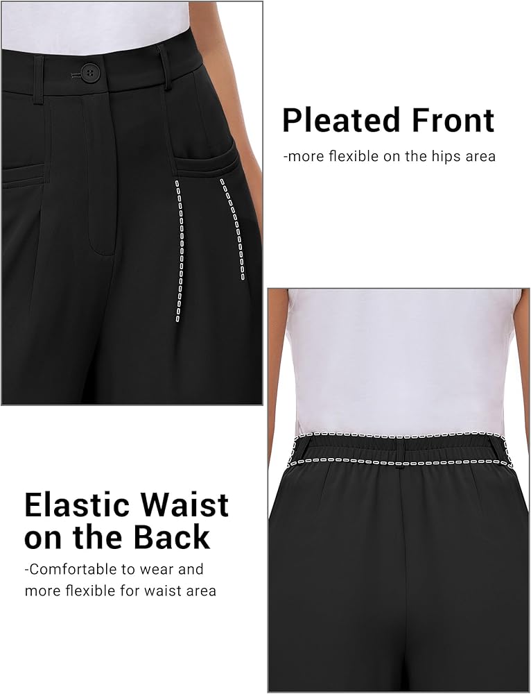 【ساق واسعة وخصر مرن】بنطلون واسع الساق يوفر ملاءمة واسعة، مما يسمح بالسهولة والمرونة في كل خطوة. حزام الخصر المطاطي الموجود في الخلف سيناسب خصرك تمامًا وبالتأكيد يغري منطقة معدتك. يمكن استخدام السراويل الرسمية في ملابس غير رسمية أو مع ملابس احترافية