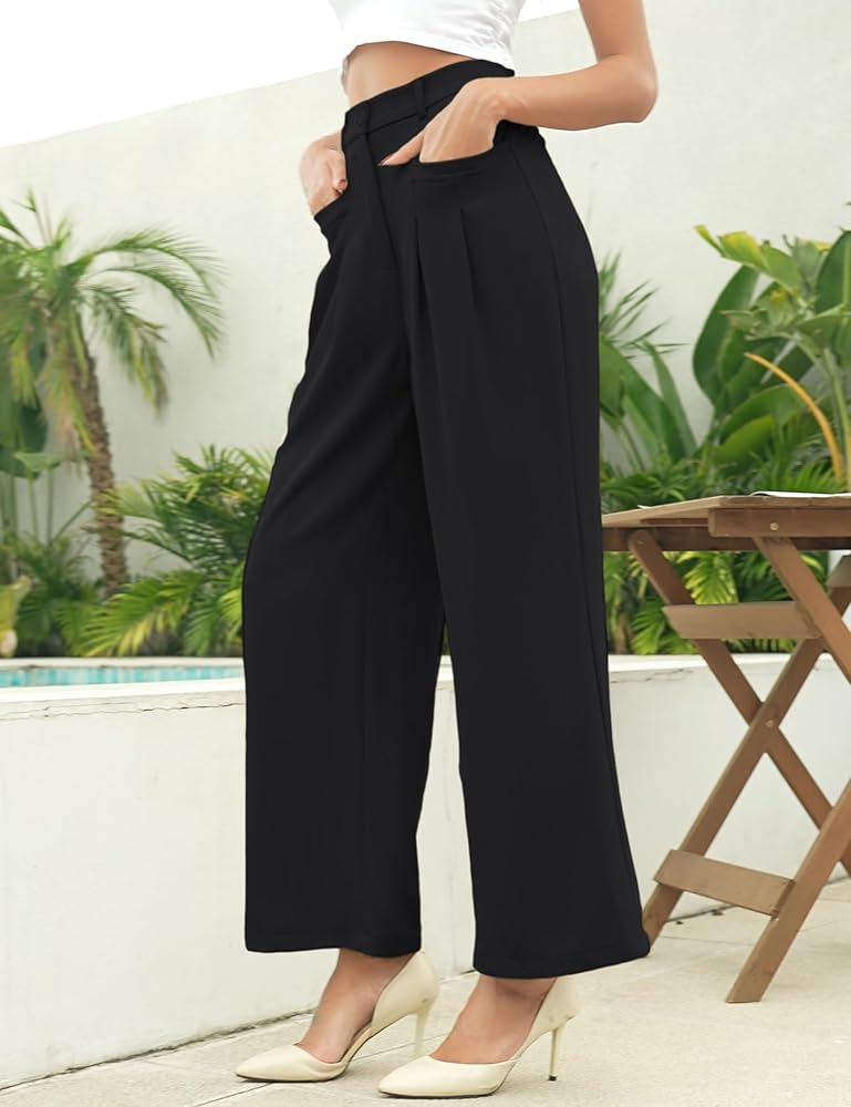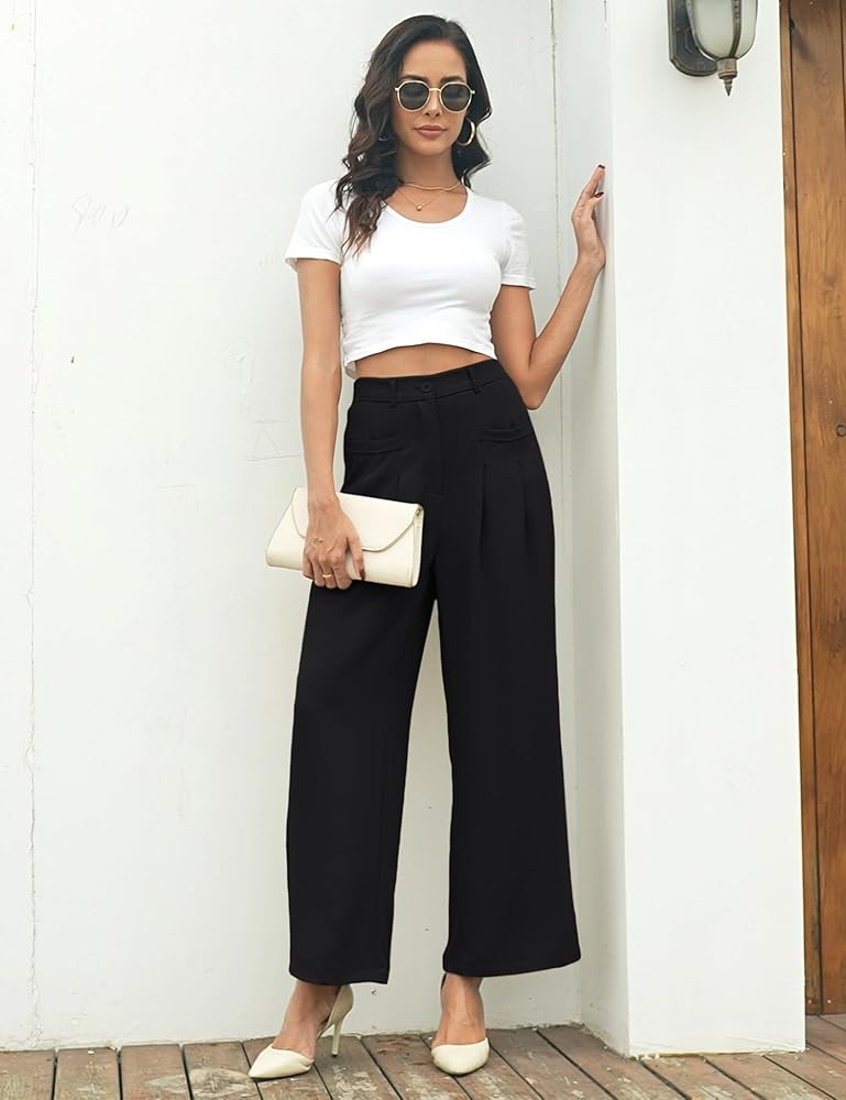 【ميزات فريدة من نوعها】يتميز البنطلون النسائي بحزام خصر مطاطي في الخلف، ونمط ساق عريض عالي الخصر، ومطوي من الأمام، ومقاس فضفاض، وإغلاق بسحاب، وجيبين أماميين مسطحين عمليين. الطيات في المقدمة مثالية للحصول على ثنية رائعة ومظهر عصري