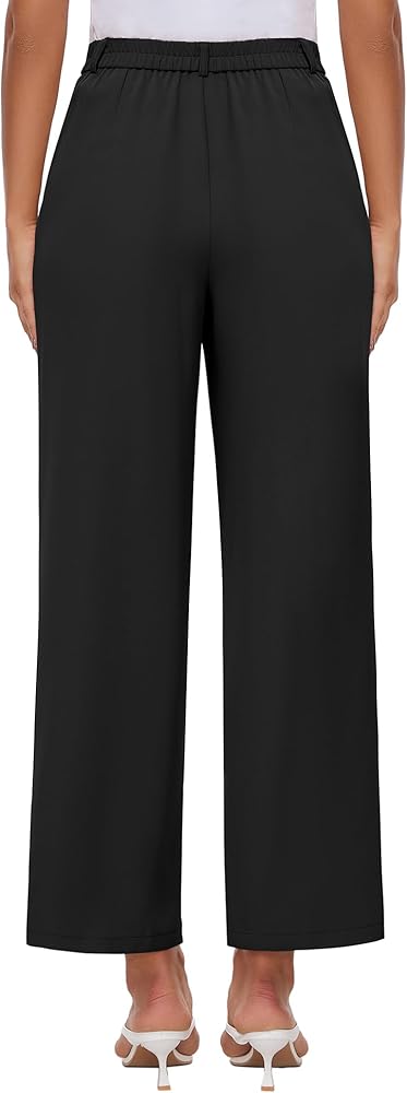 【نسيج متدفق ومريح】هذه السراويل واسعة الساق مصنوعة من نسيج ناعم وأملس ومسامي ومتوسط الوزن، وليست سميكة جدًا ولكن بالتأكيد لا يمكن رؤيتها من خلالها. تمكن من تحقيق التوازن المثالي بين الراحة والمظهر الاحترافي