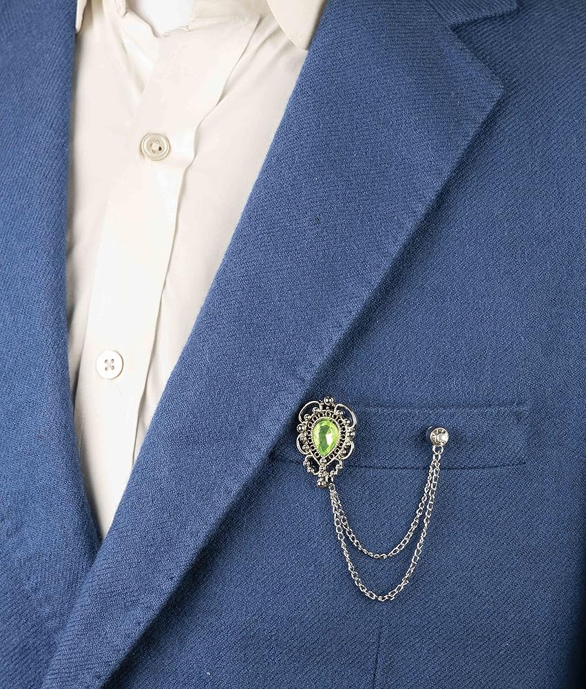 A N KINGPiiN Silver Lime Green Stone Lapel Pin Badge Coat Suit Wedding Gift Party Shirt Collar Accessories Brooch for Men,A12, Metal, no gemstone