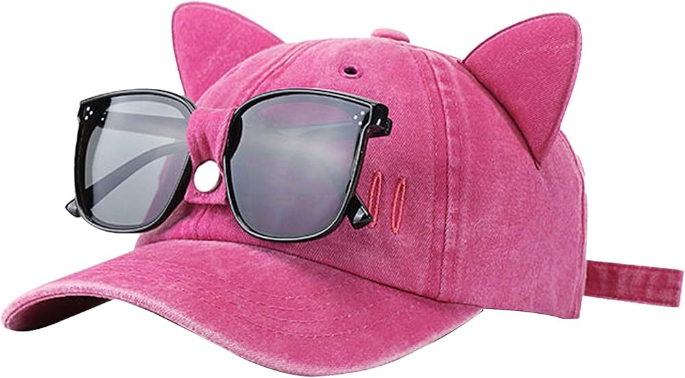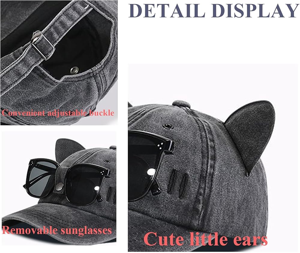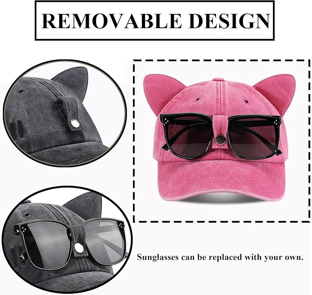 - تصميم خاص - يمكن للجزء الأمامي من قبعة البيسبول ربط النظارات الشمسية، مريحة ورائعة، والأذنين على الأطراف العلوية، لطيفة ومرحة.