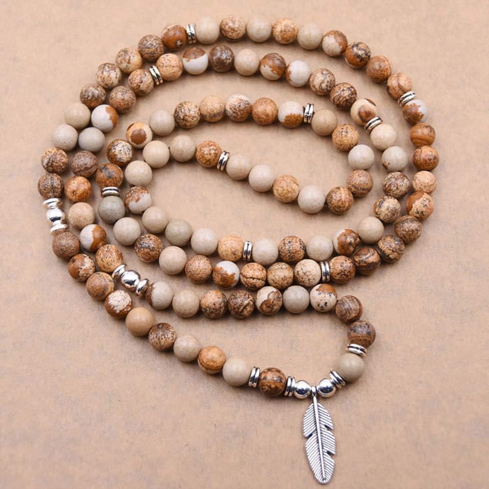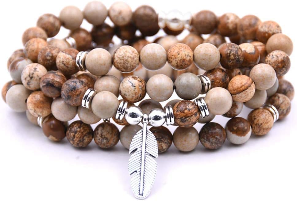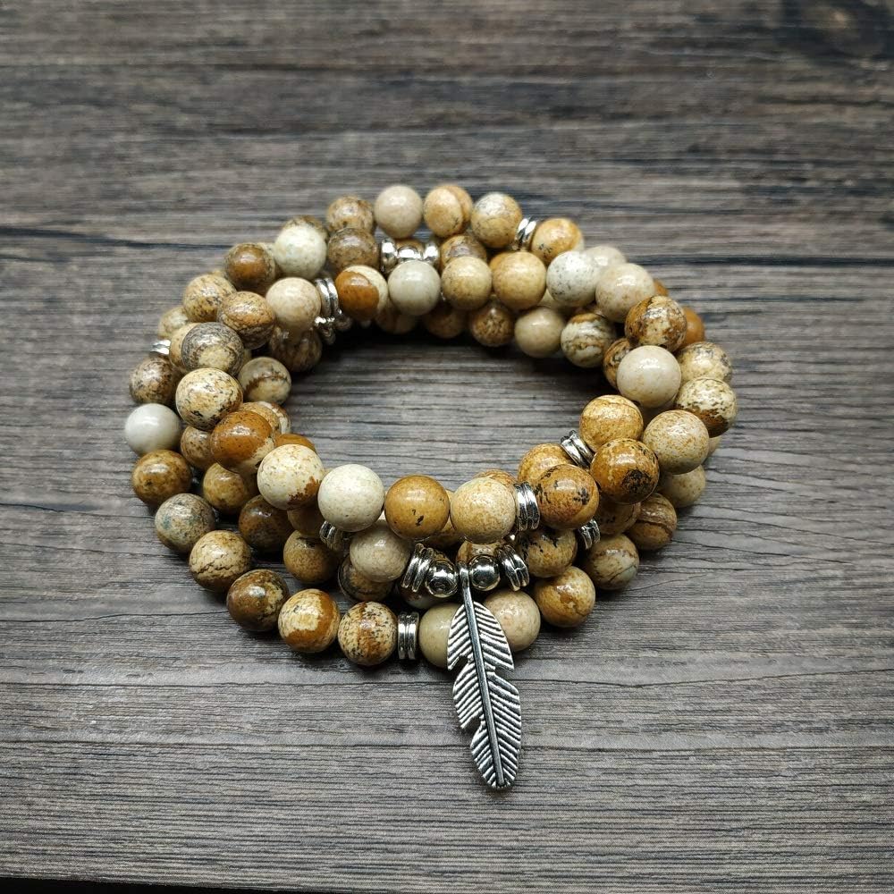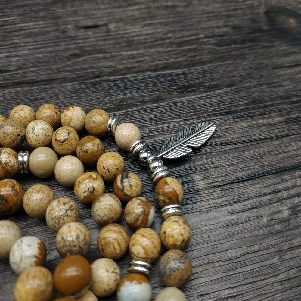 ❁ منتجات مصنوعة يدويًا بنسبة 100%: سوار معصم رائع مكون من 108 خرزة من جابا مالا تمت معالجته بخرز حجر الشفاء الطبيعي ومجهز بعناية بحلية على شكل ورقة شجر وإكسسوارات.