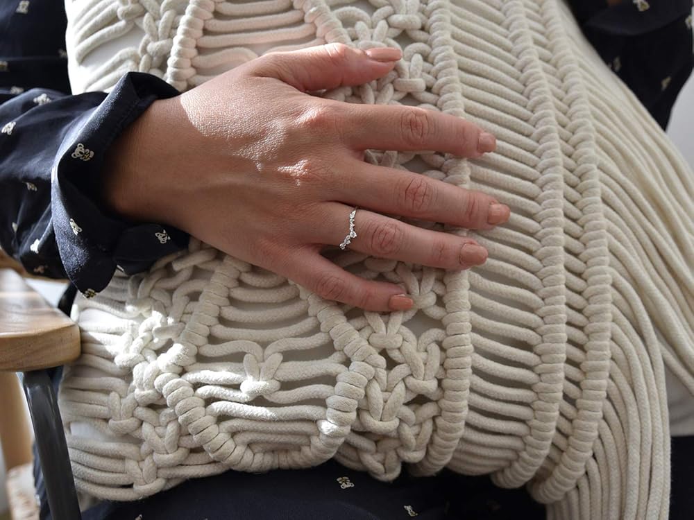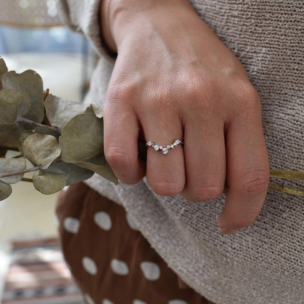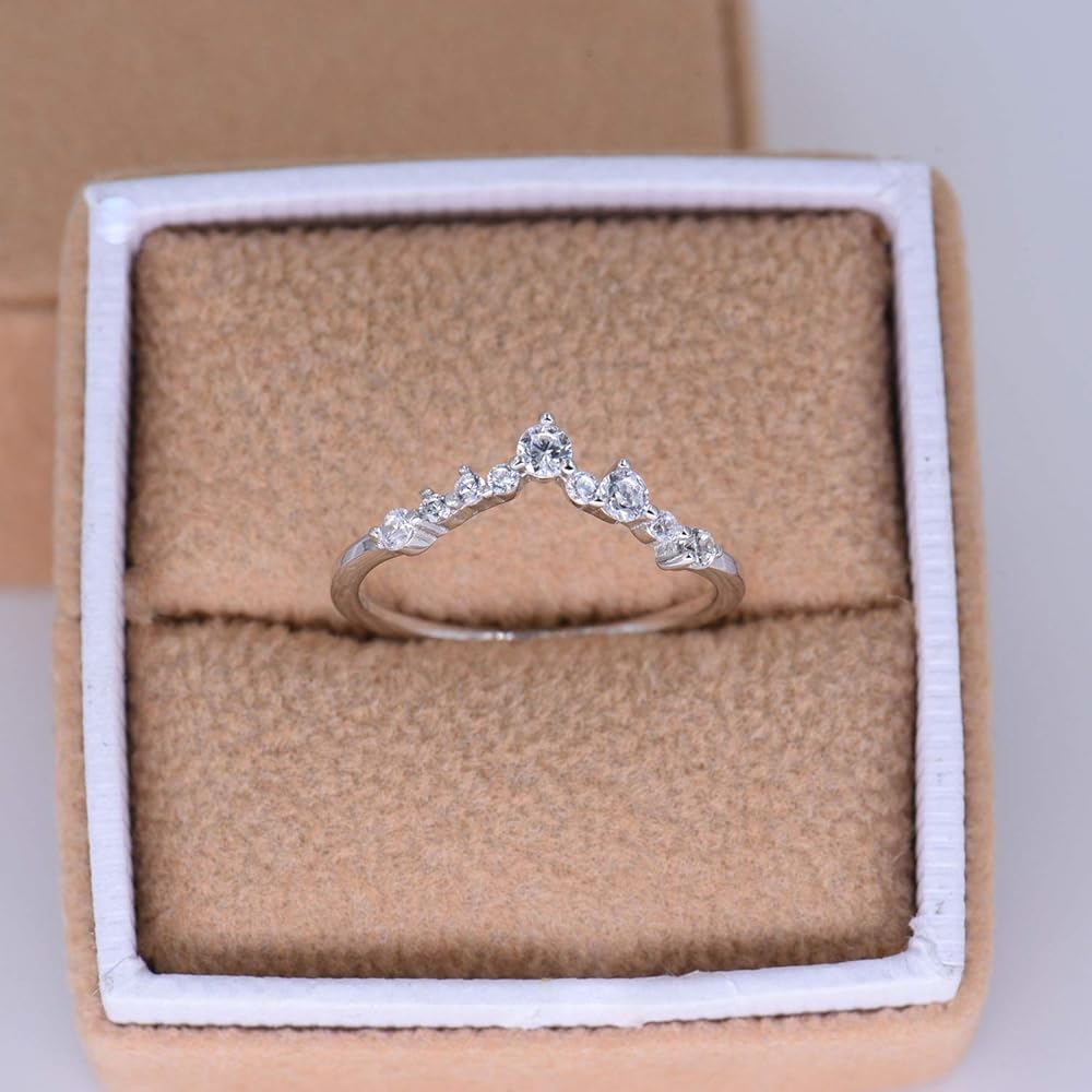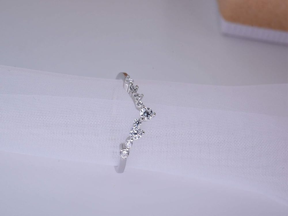 خاتم على شكل حرف V من BLOSSOM & HUE - قوس شيفرون [زركونيا مكعبة من الألماس المقلد تشيكوسلوفاكيا] منحني لحفلات الزفاف/الزفاف - سوار سوليتير مرصوف [مطلي بالروديوم - فضة استرلينية عيار 925]