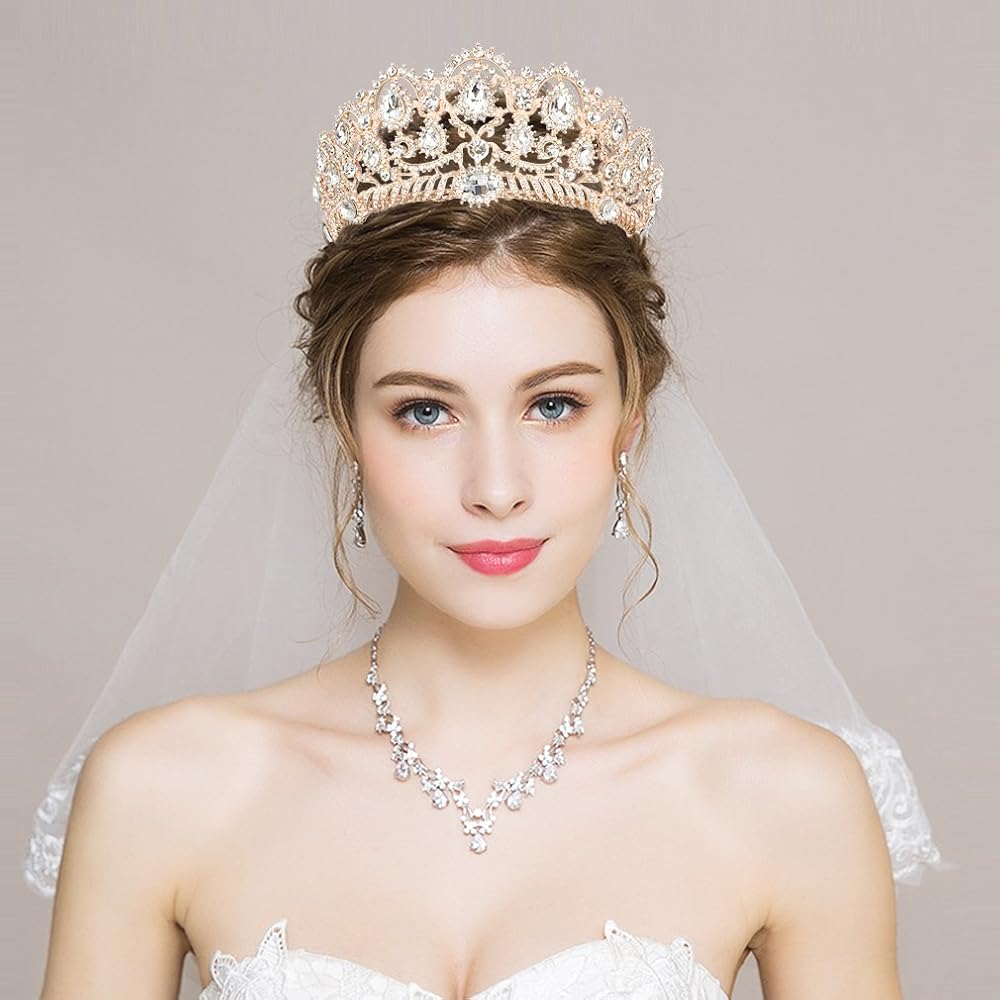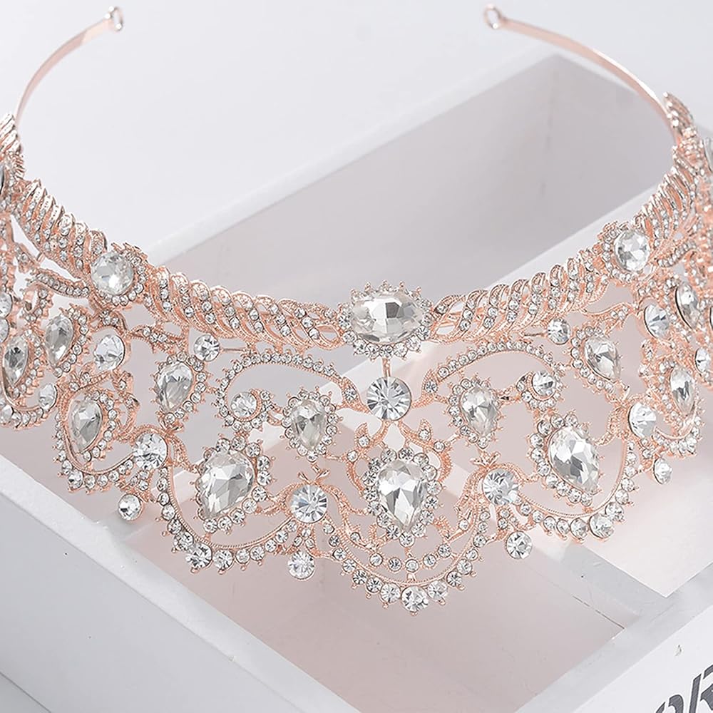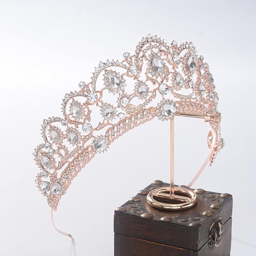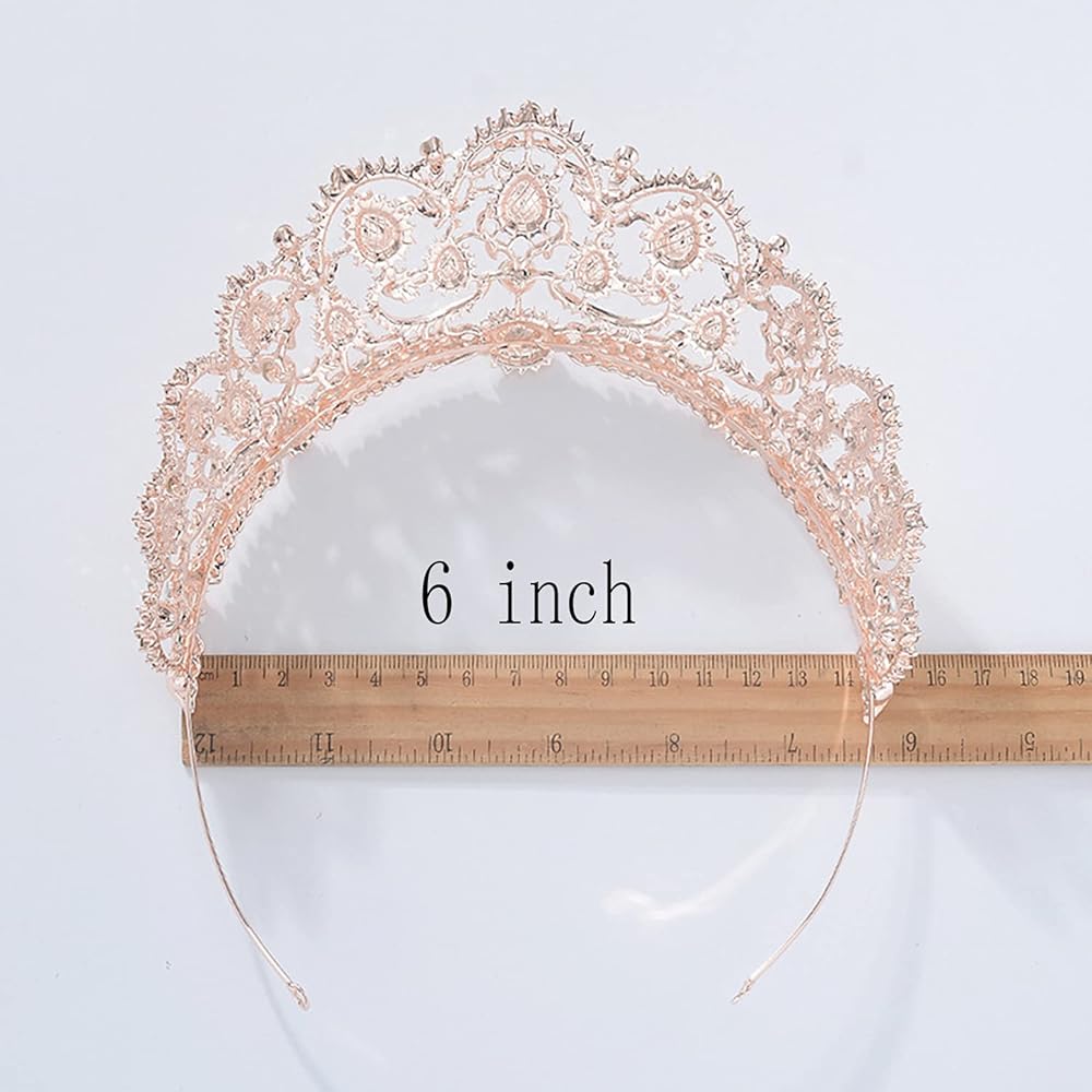 • هذا التاج الجميل المطلي بالذهب الوردي والمصنوع من حجر الراين مرصع بأحجار الراين المتلألئة.